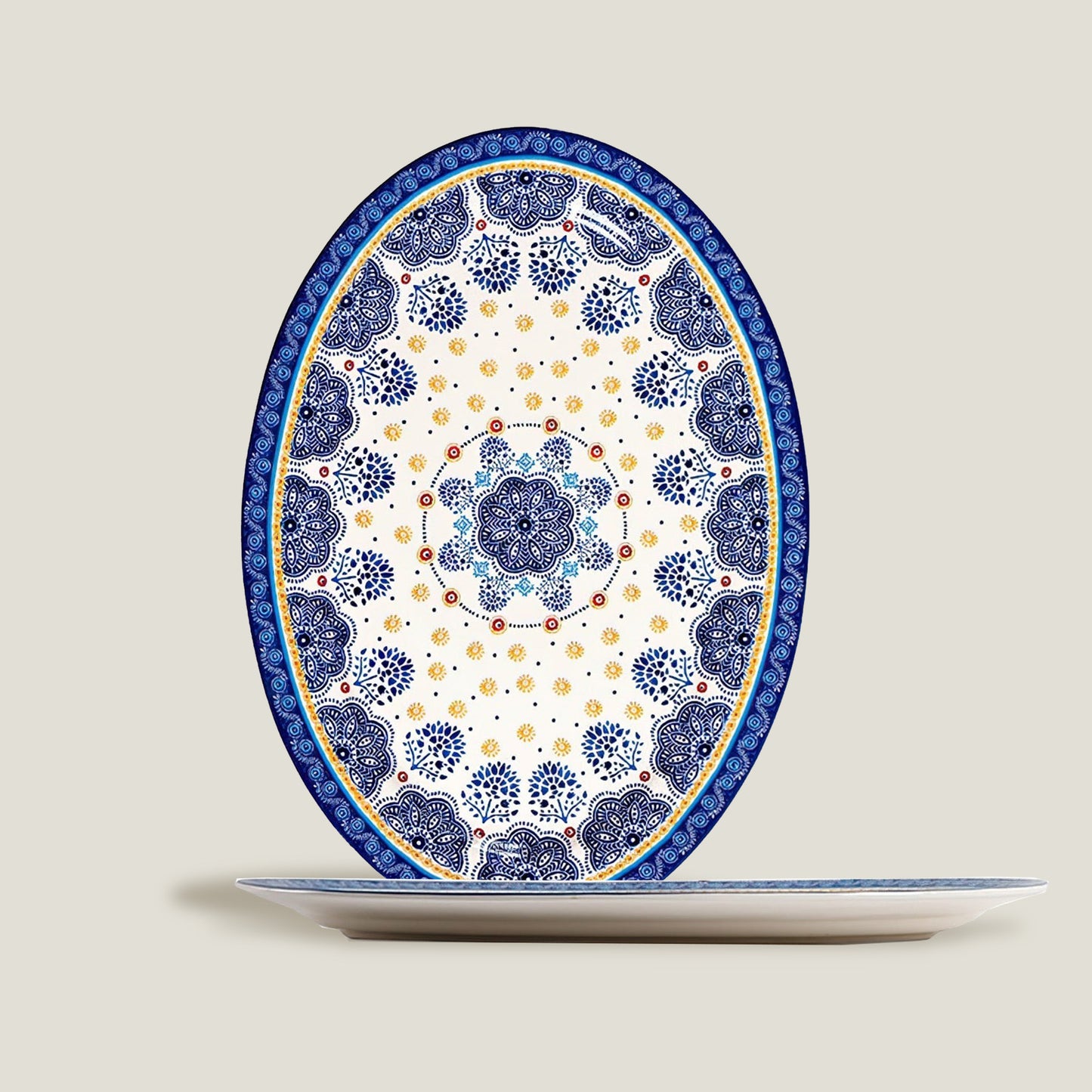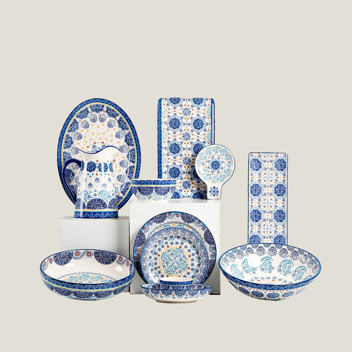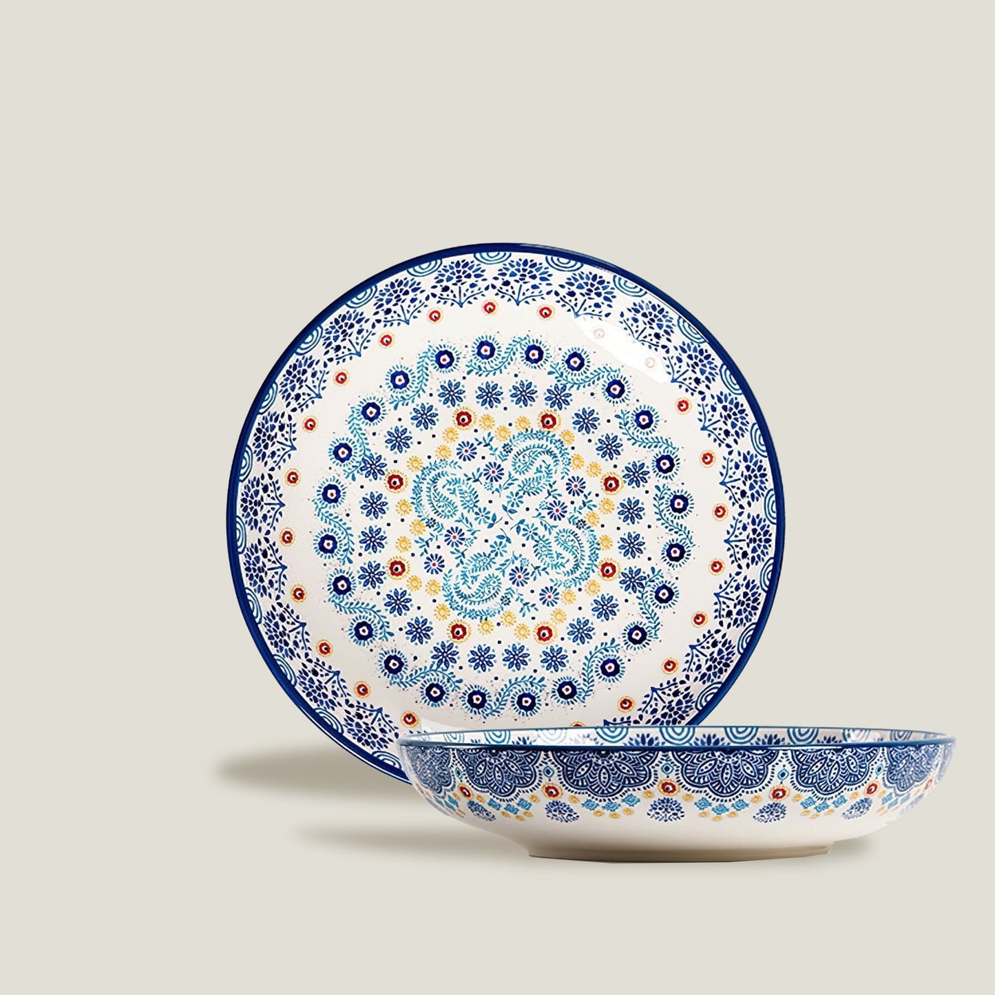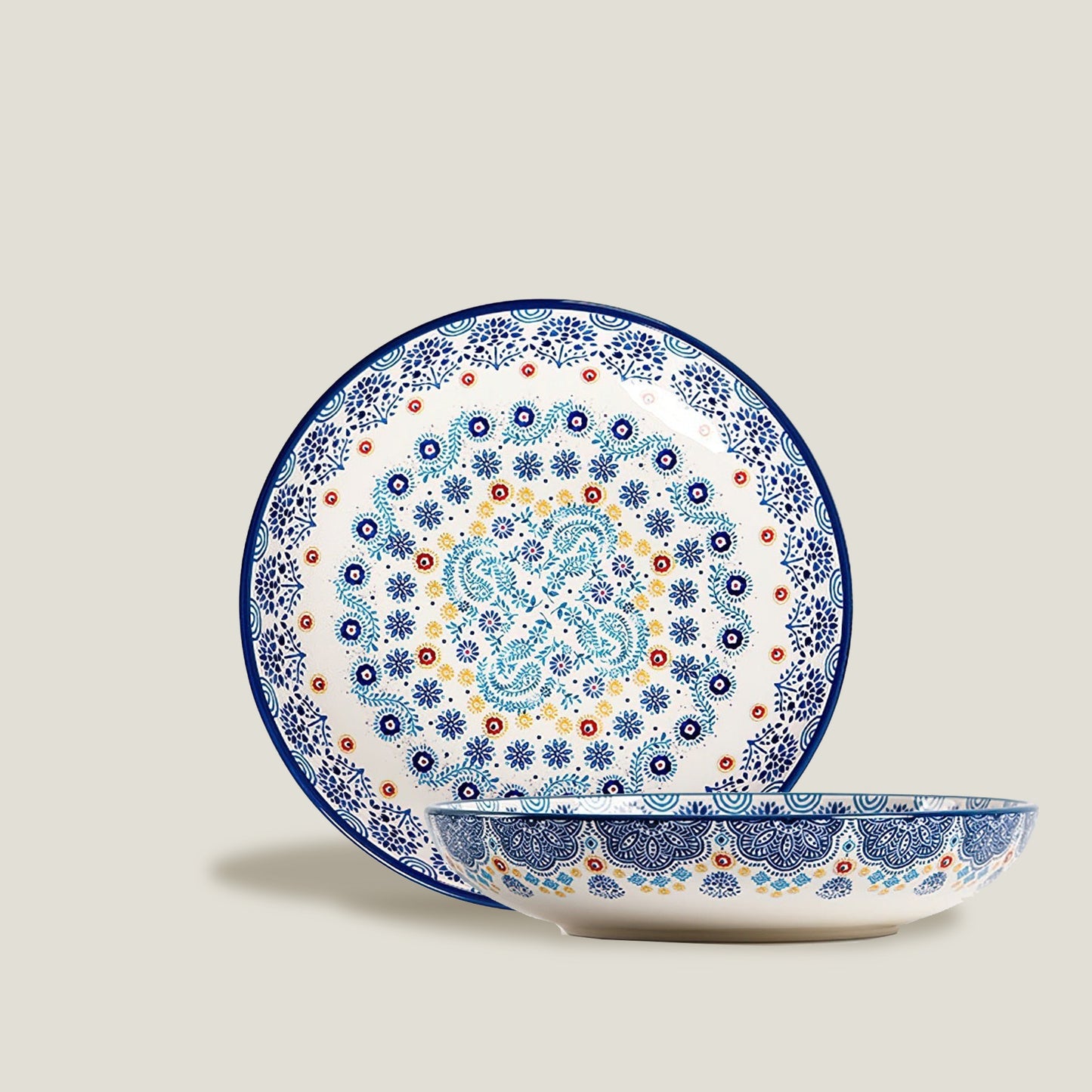 Erleben Sie lebendige Kunstfertigkeit in Ihrem Zuhause mit diesem auffälligen blauen Oaxaca-Geschirr. Hergestellt aus Keramik mit faszinierenden blauen Mosaikmustern,