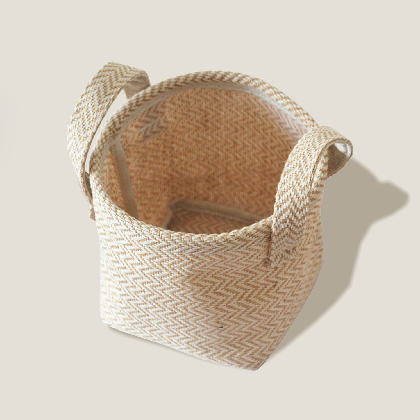 Der geflochtene Aufbewahrung skorb hat eine weiche Textur aus natürlichen Leinen materialien, ideal für die Heim organization.