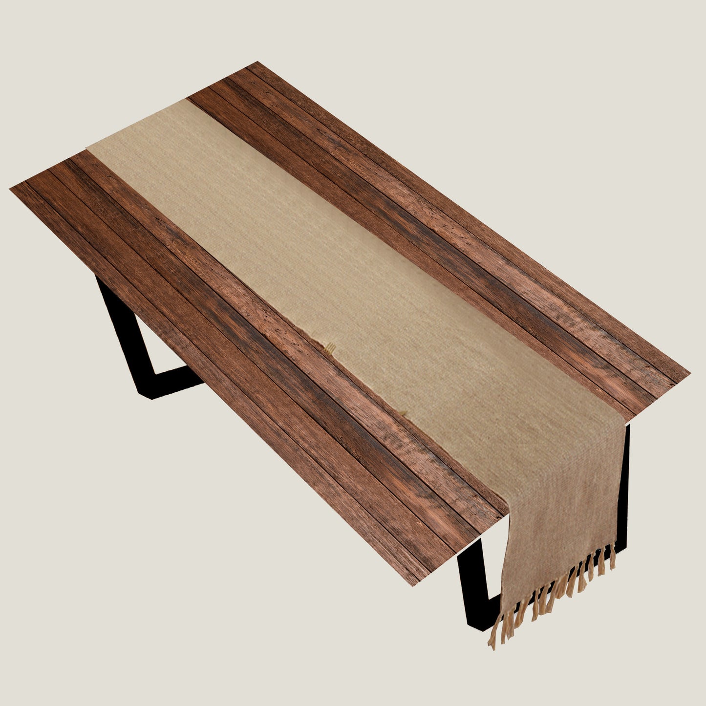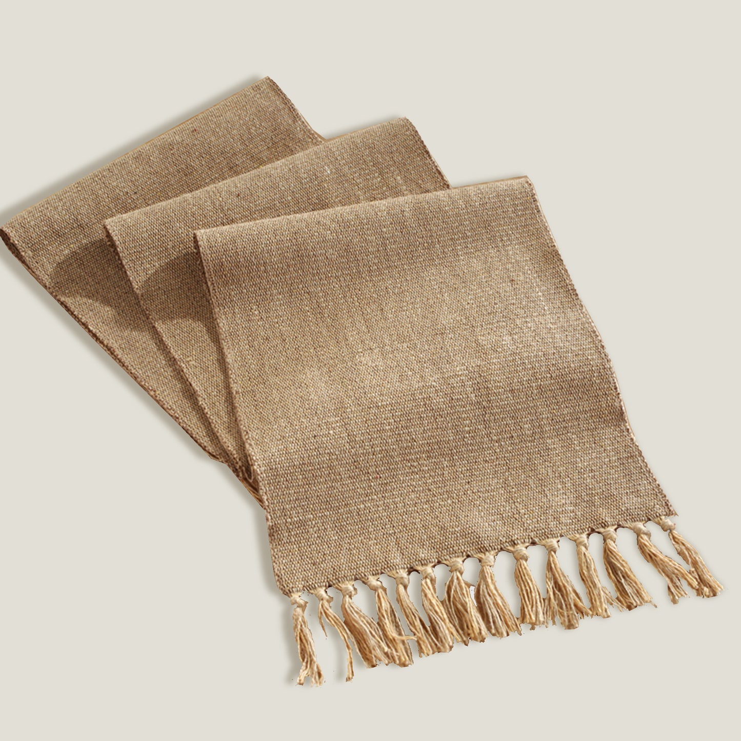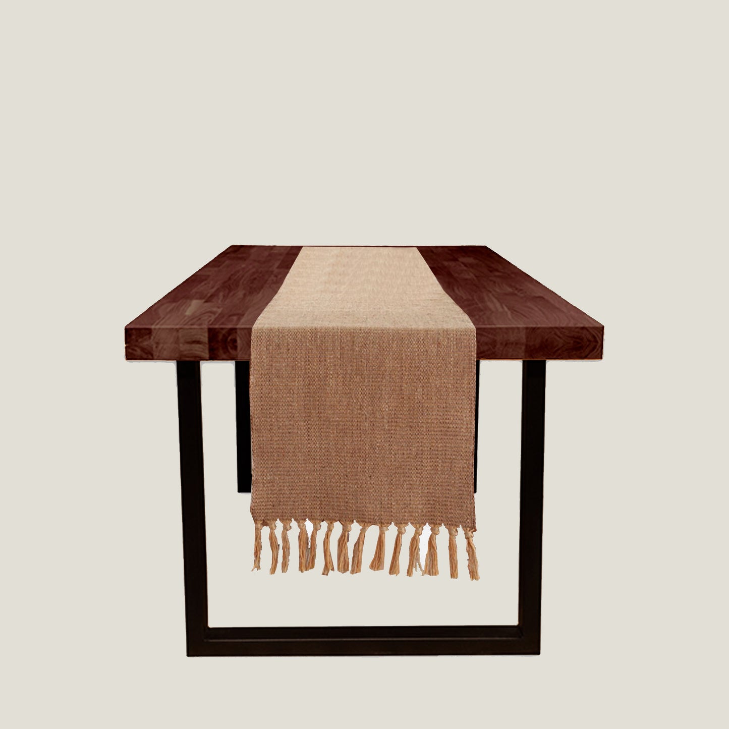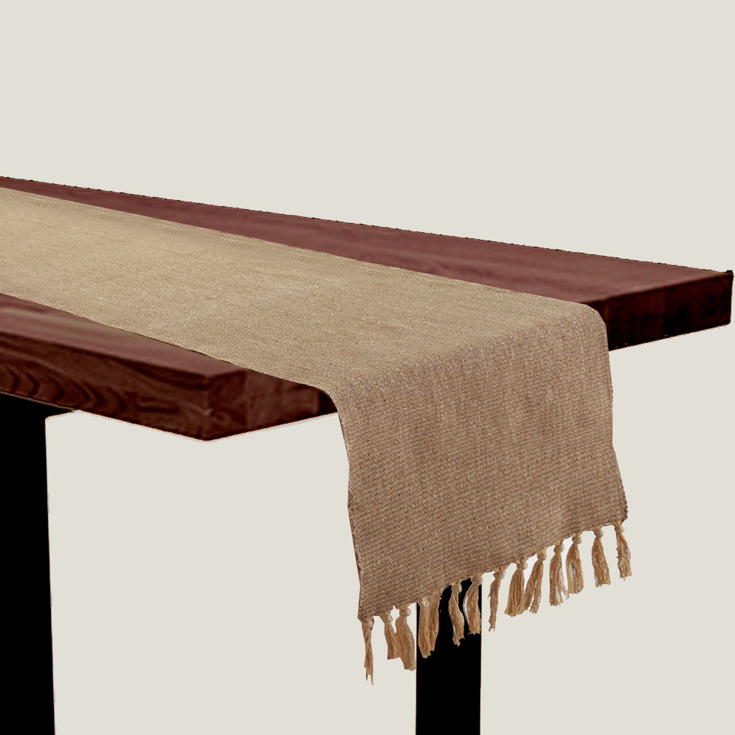 Der Kaffeequasten-Tischläufer hat eine neutrale, einfarbige braune Farbe, eine wunderschöne Option, um Ihrem Esszimmertisch ein rustikales Element hinzuzufügen.