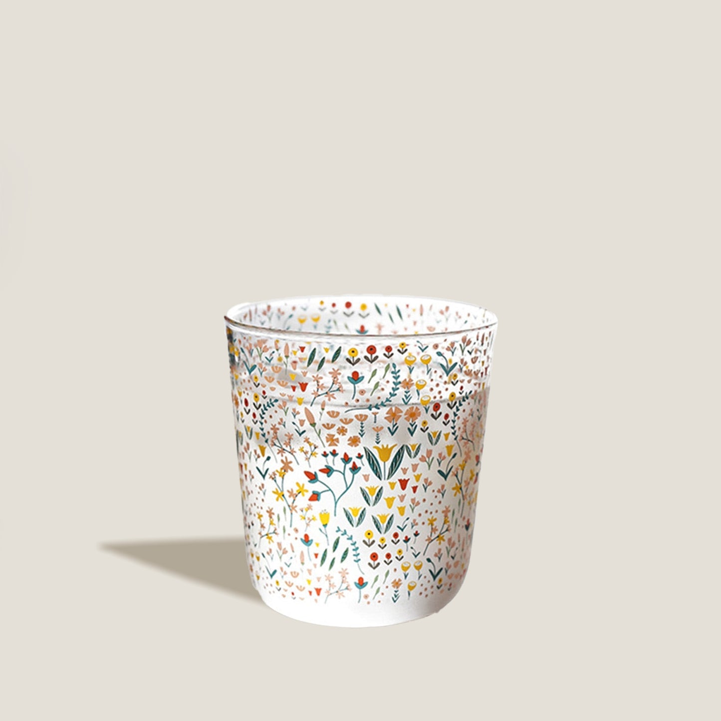 Der Floral Glass Cup hat ein wunderschönes undurchsichtiges Glas mit Blumenmuster.