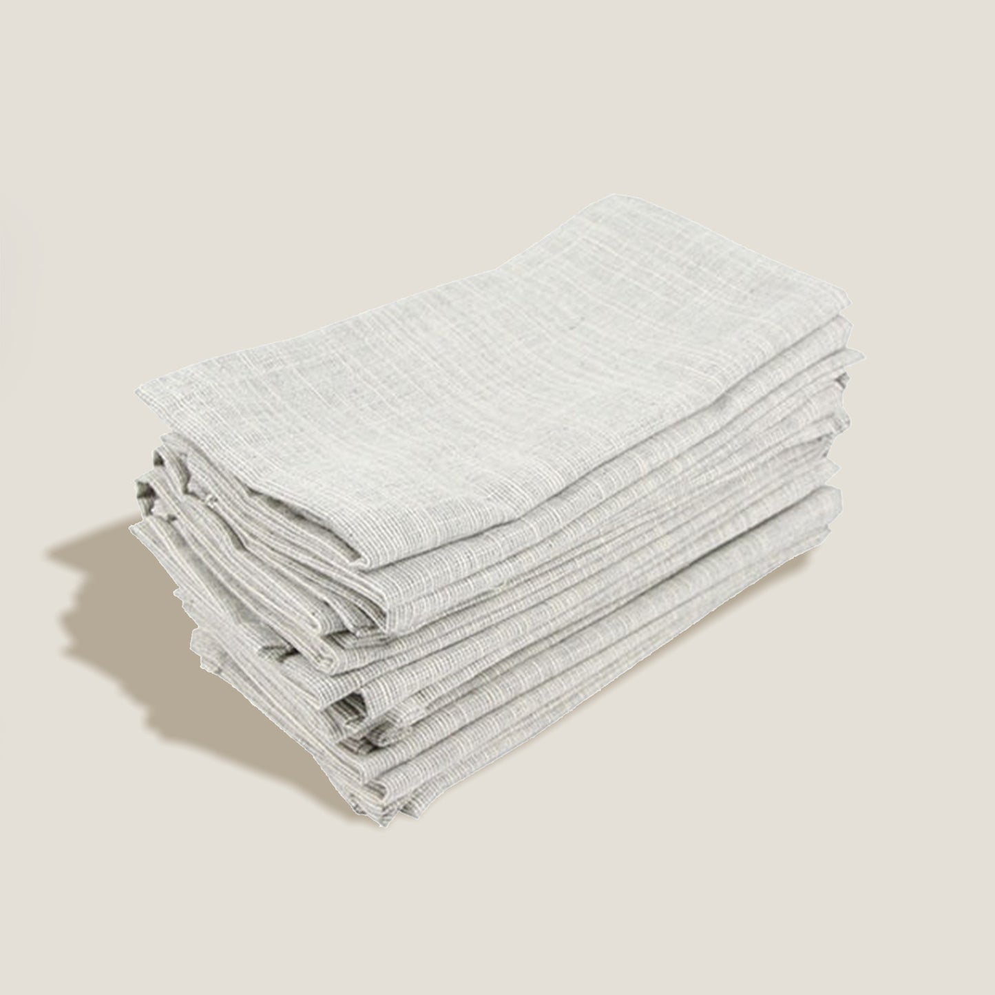 Das neutrale Servietten-Set hat eine weich gewebte Textur mit einer weichen neutralen Farbpalette. Das Set enthält 12 Stück Baumwoll-Servietten-Set.