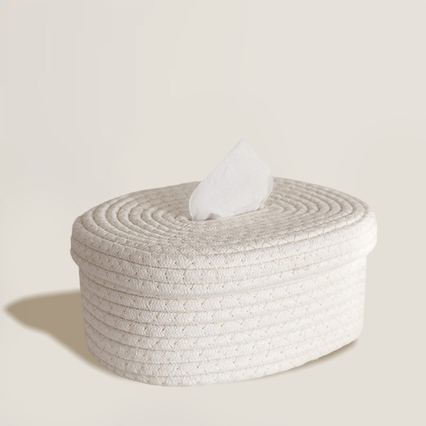 Cremefarbene Taschentuchbox aus gewebtem Seil
