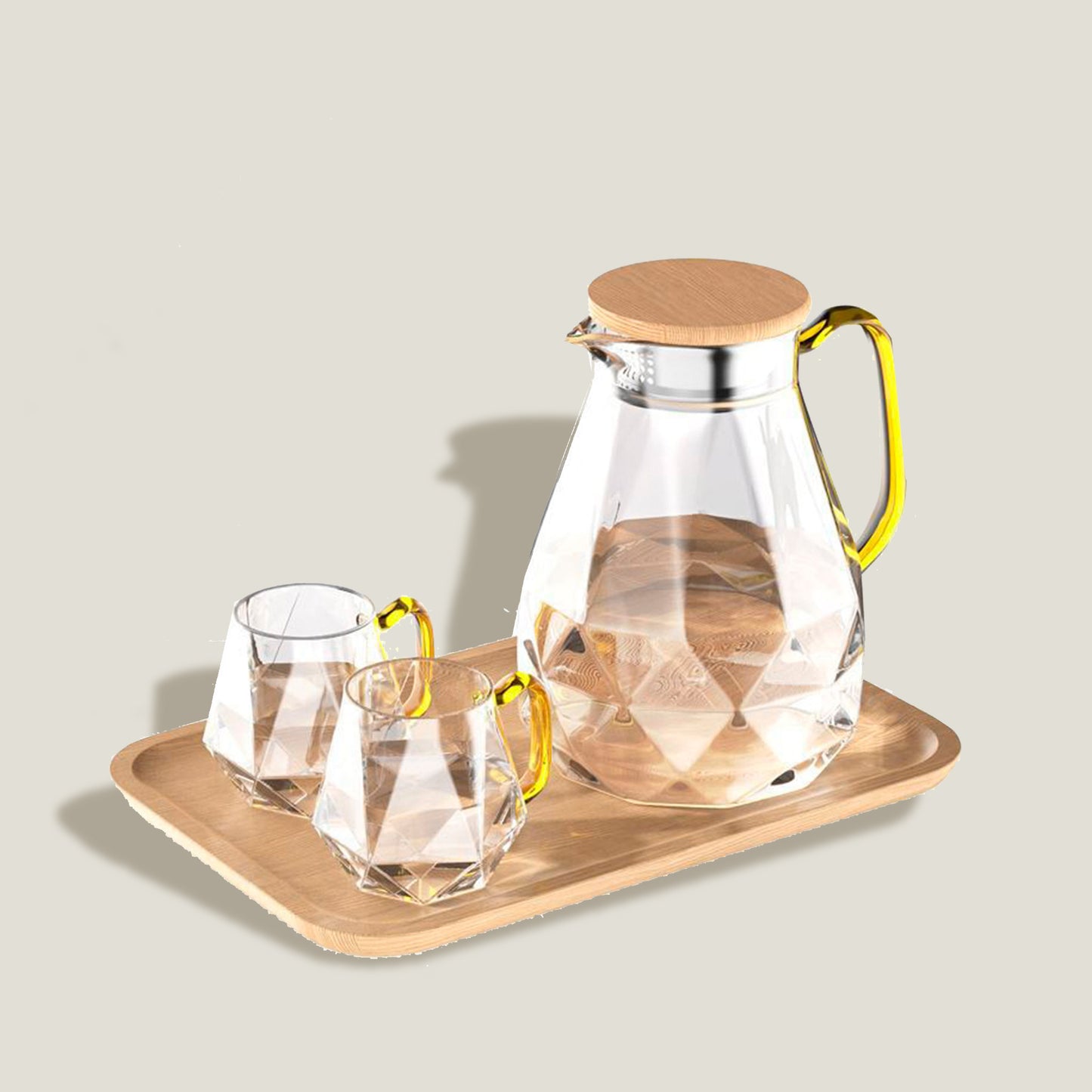 Das Set enthält 1 Wasserkrug und 2 Glasbecher.