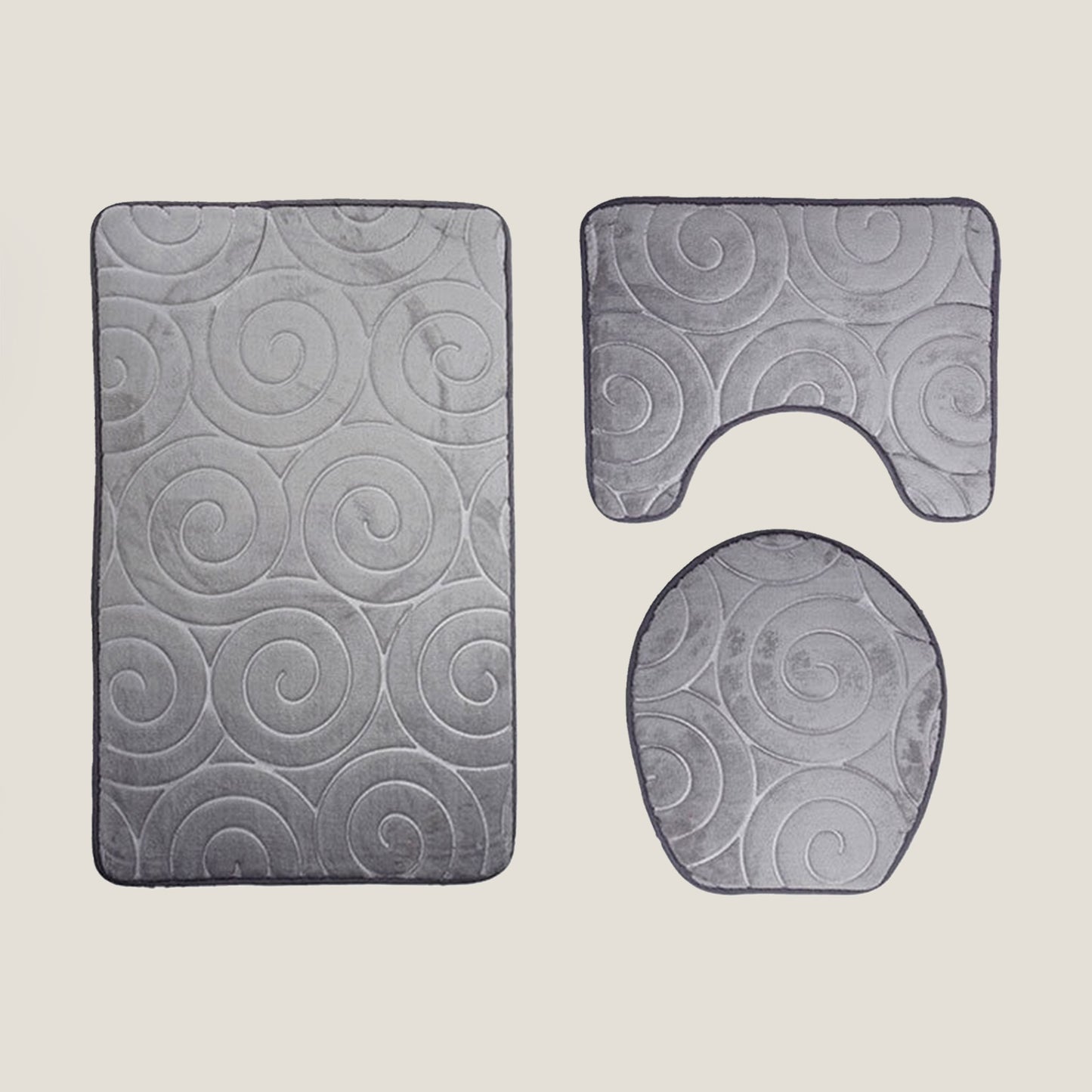 Geprägtes Badezimmer-Badematten-Set mit Toilettenvorleger, Deckelbezug und Badezimmermatte