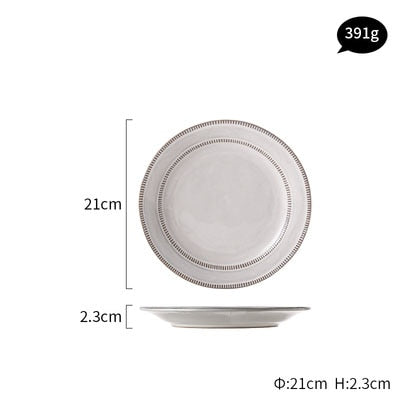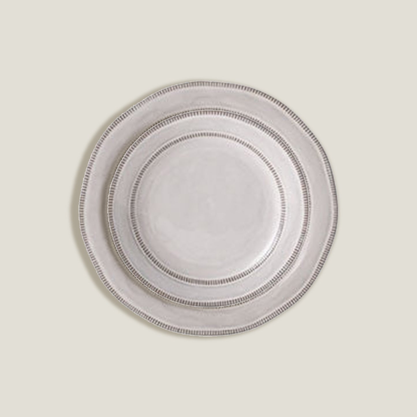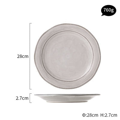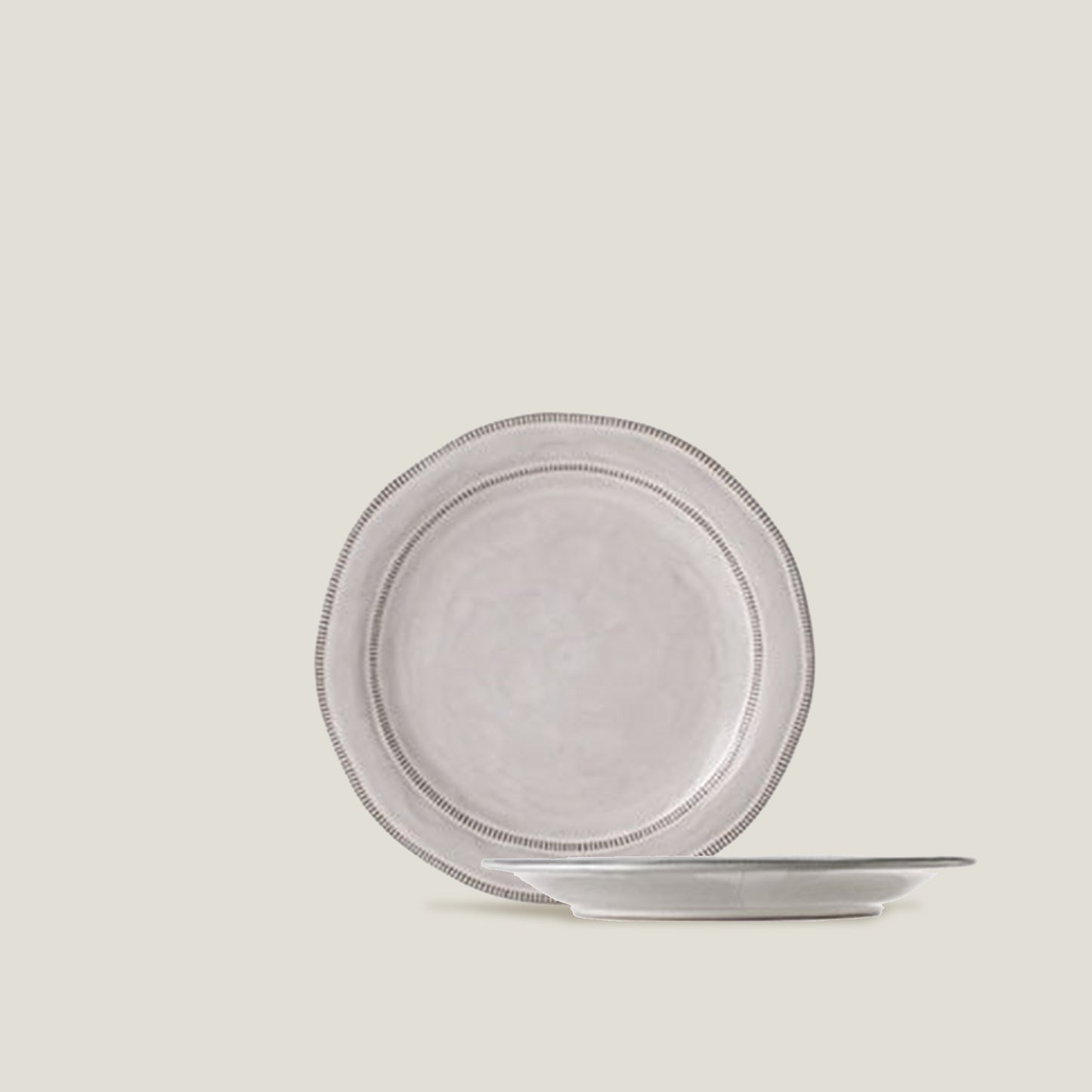 Das gewaschene Geschirr hat eine schöne gewaschene bemalte Textur mit einem einfachen Design. Diese schönen Speiseteller sind in den Farben Weiß, Pflaume und Blau erhältlich.