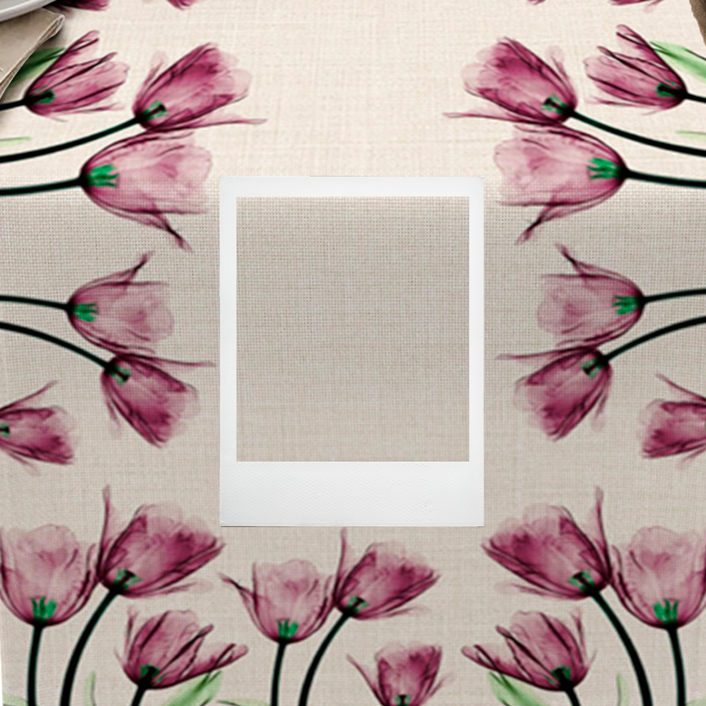 Der Tischläufer hat eine weiche Textur und ein farbenfrohes Blumenmuster.