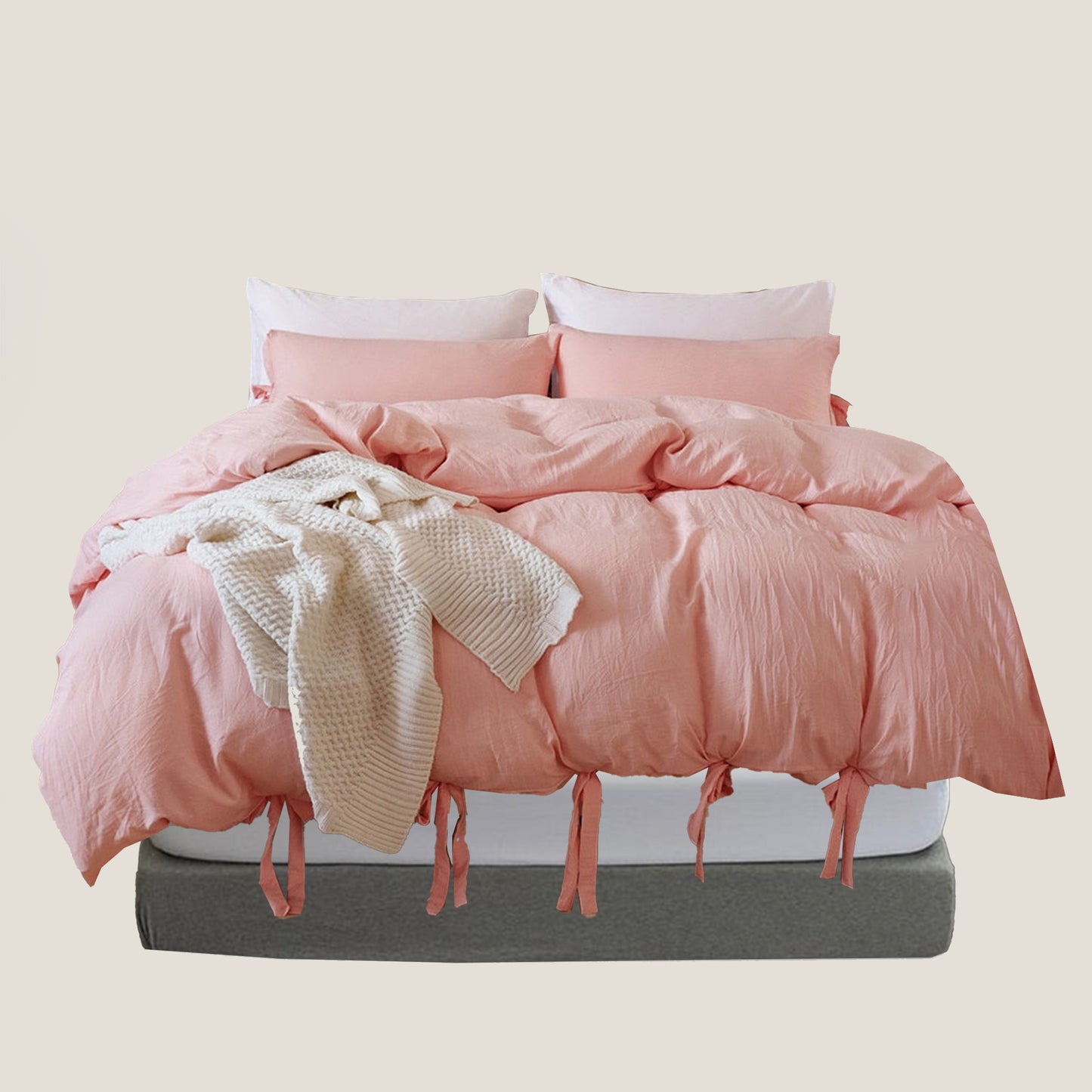 Das Bow-Bettwäscheset hat eine weiche Texturoberfläche und eine schöne Volltonfarbe.