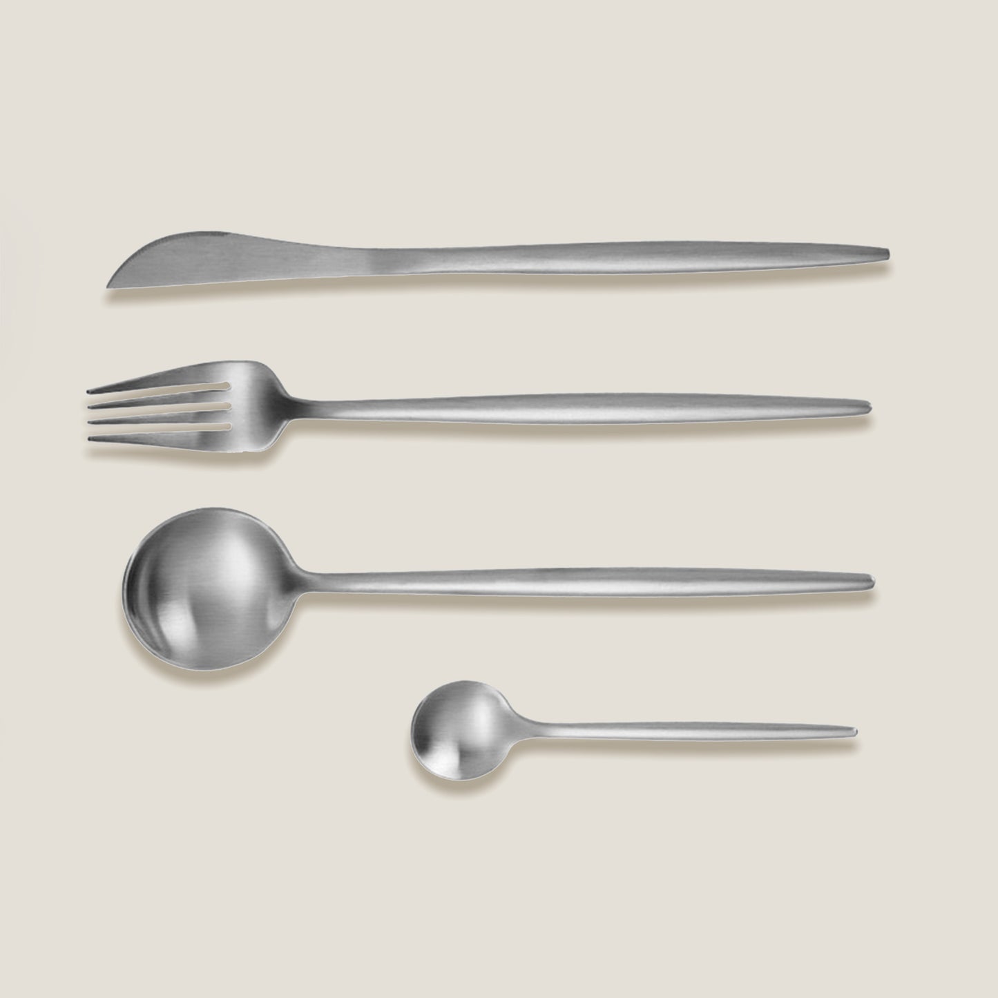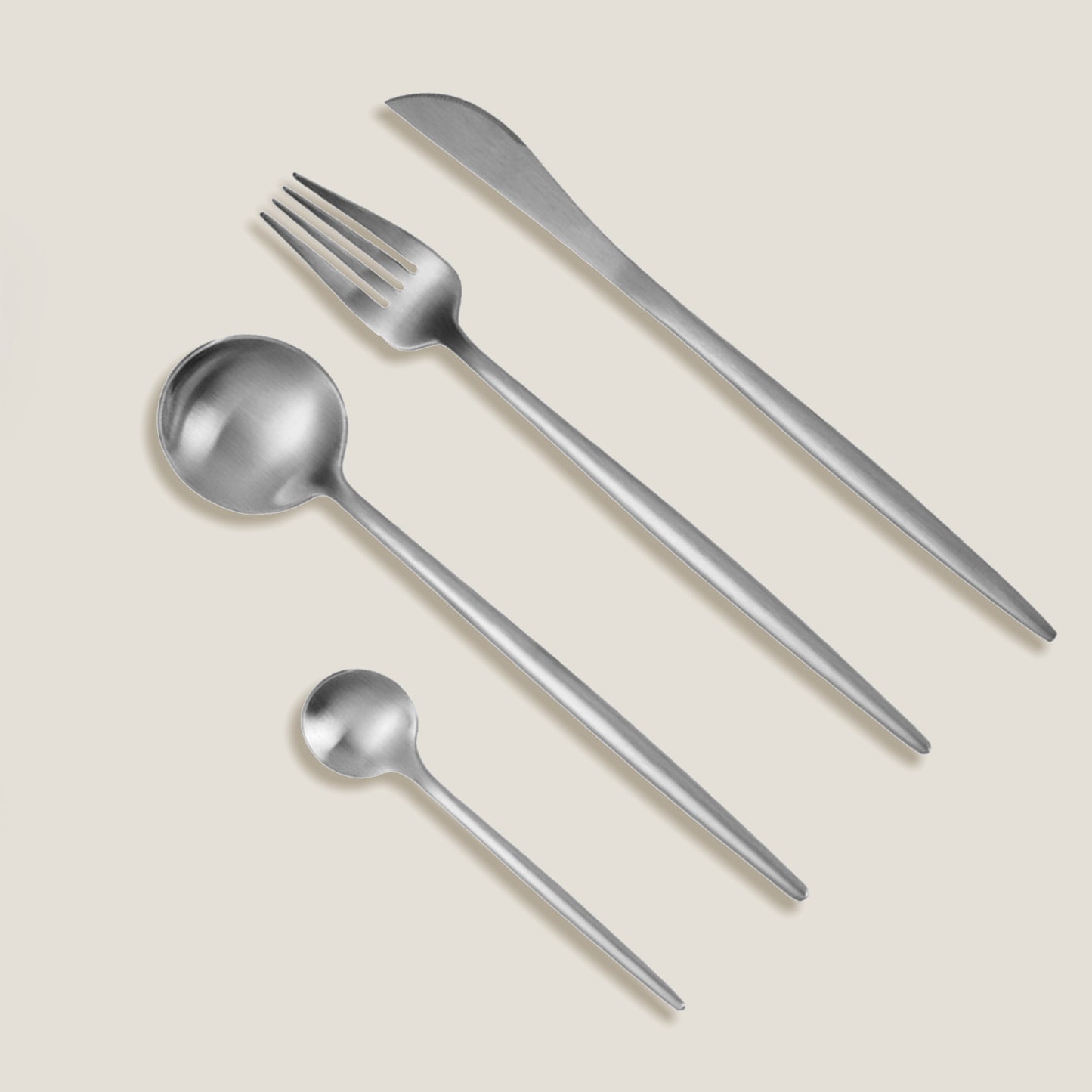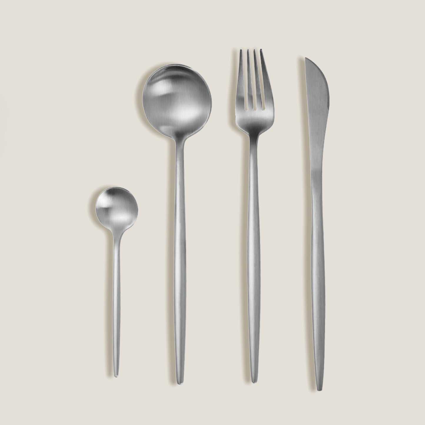 Das Line Metal Besteck Set fällt auf durch sein raffiniertes und einfach schönes Design. Perfekt für den täglichen Gebrauch und vielseitig mit Ihrem Tisch gestellen zu kombinieren.