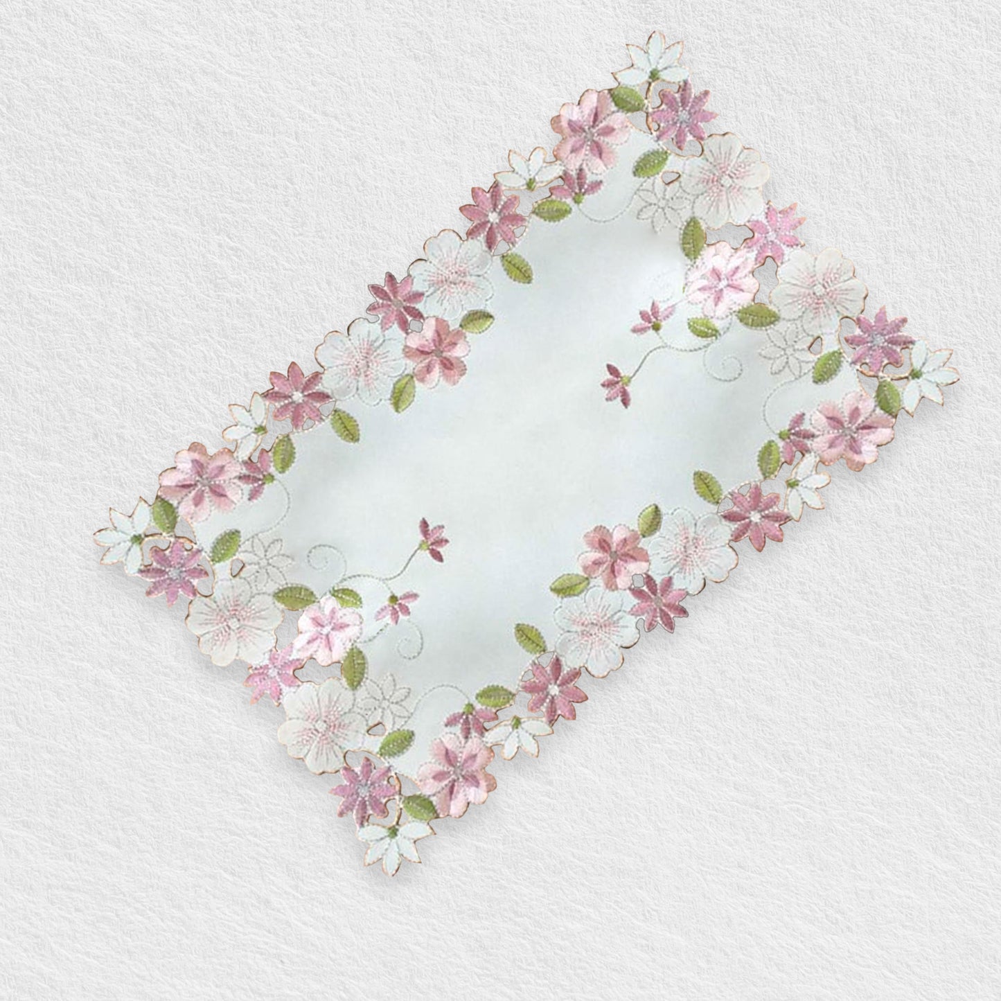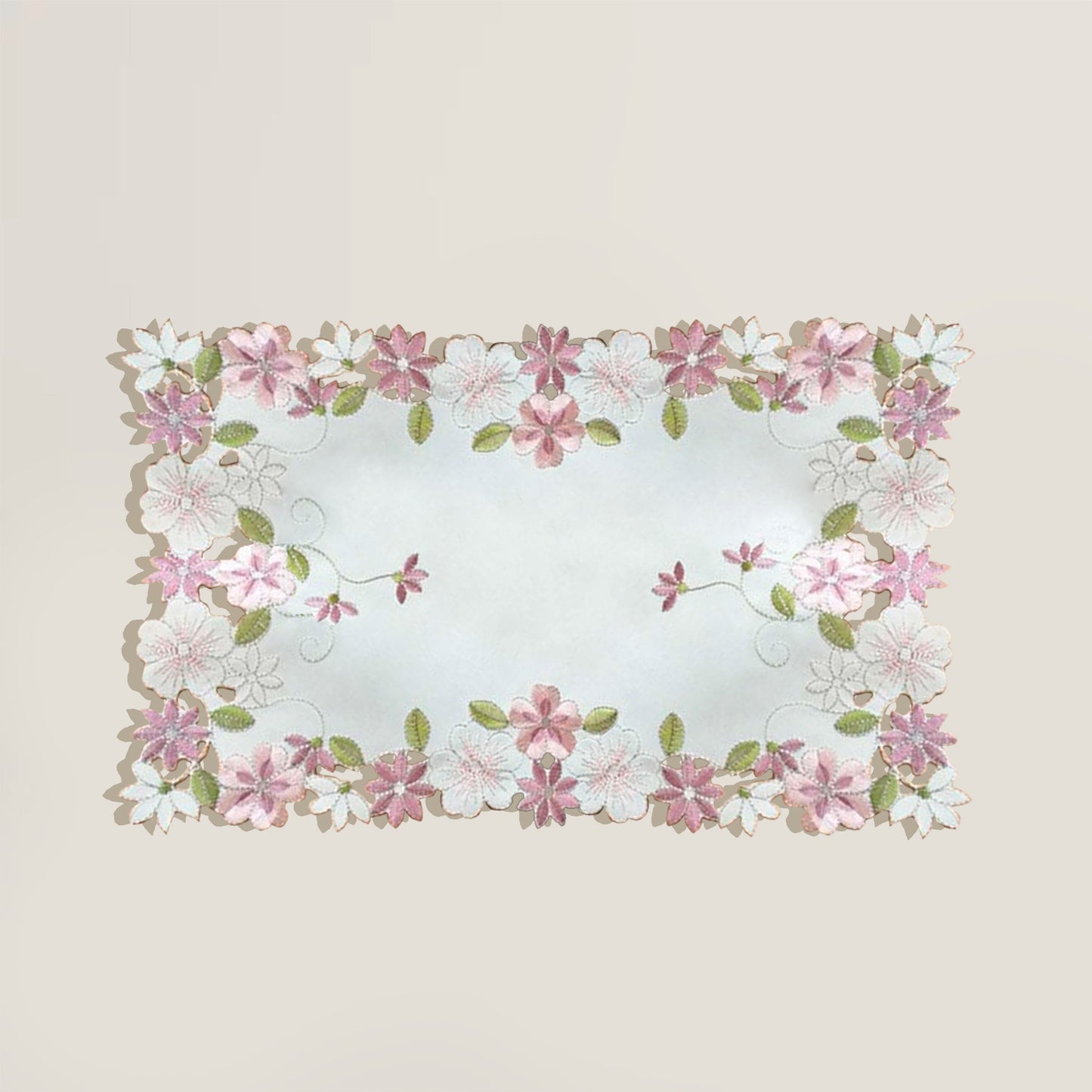 Das Rose Lace Tischset ist ein beliebtes Blumenstickerei-Weiß mit rosafarbenen Details für jede Tischdekoration.