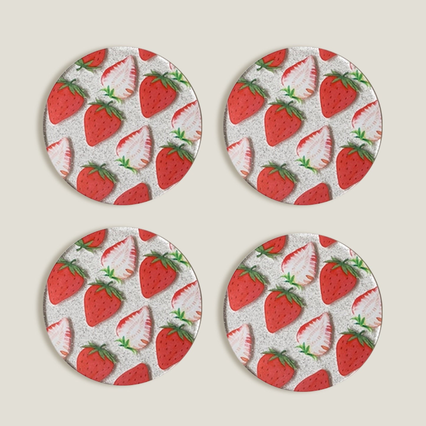 Die Erdbeer-Untersetzer sind eine farbenfrohe Ergänzung für Ihre Esstischdekoration. Das Acrylmaterial ist langlebig und wasserdicht.