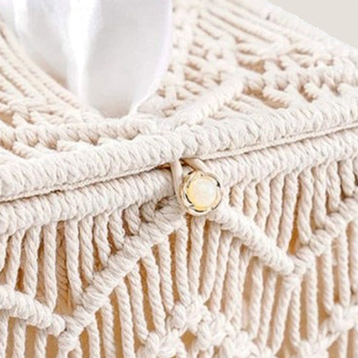 Soporte Para Caja De Pañuelos De Ganchillo Beige