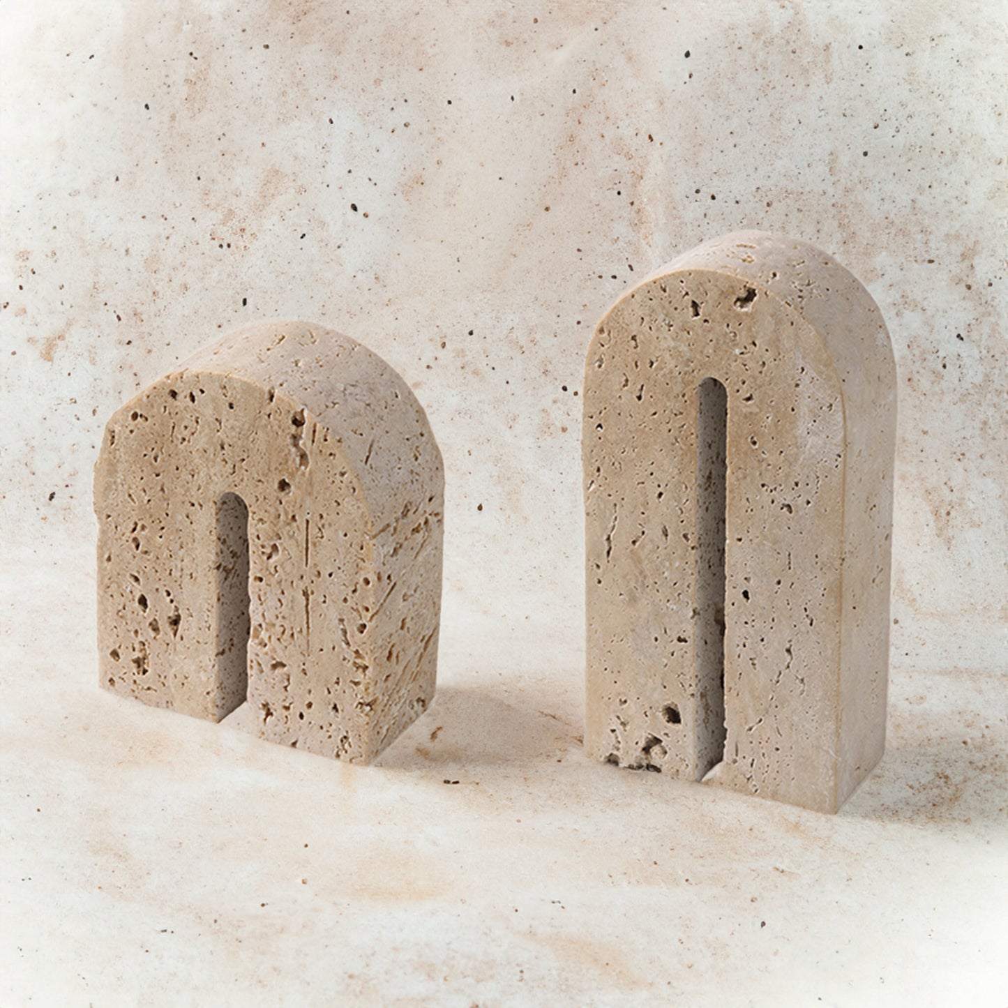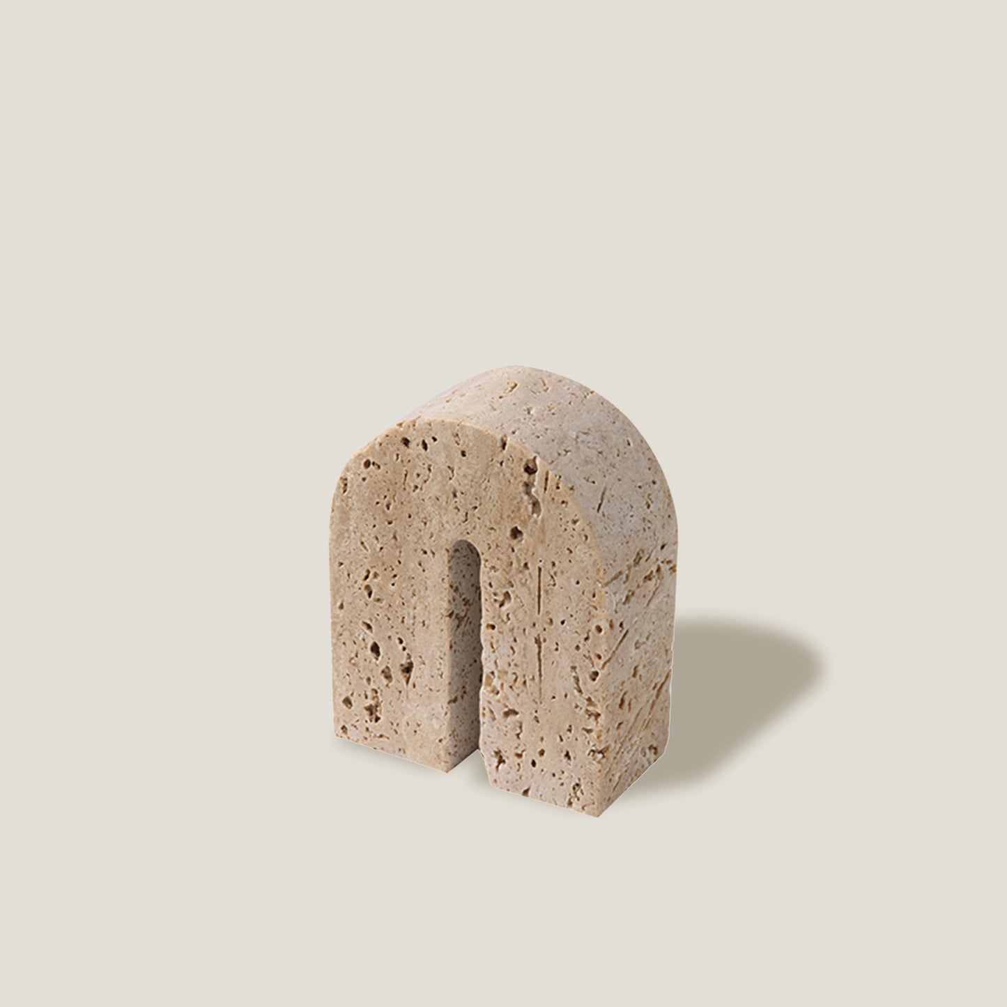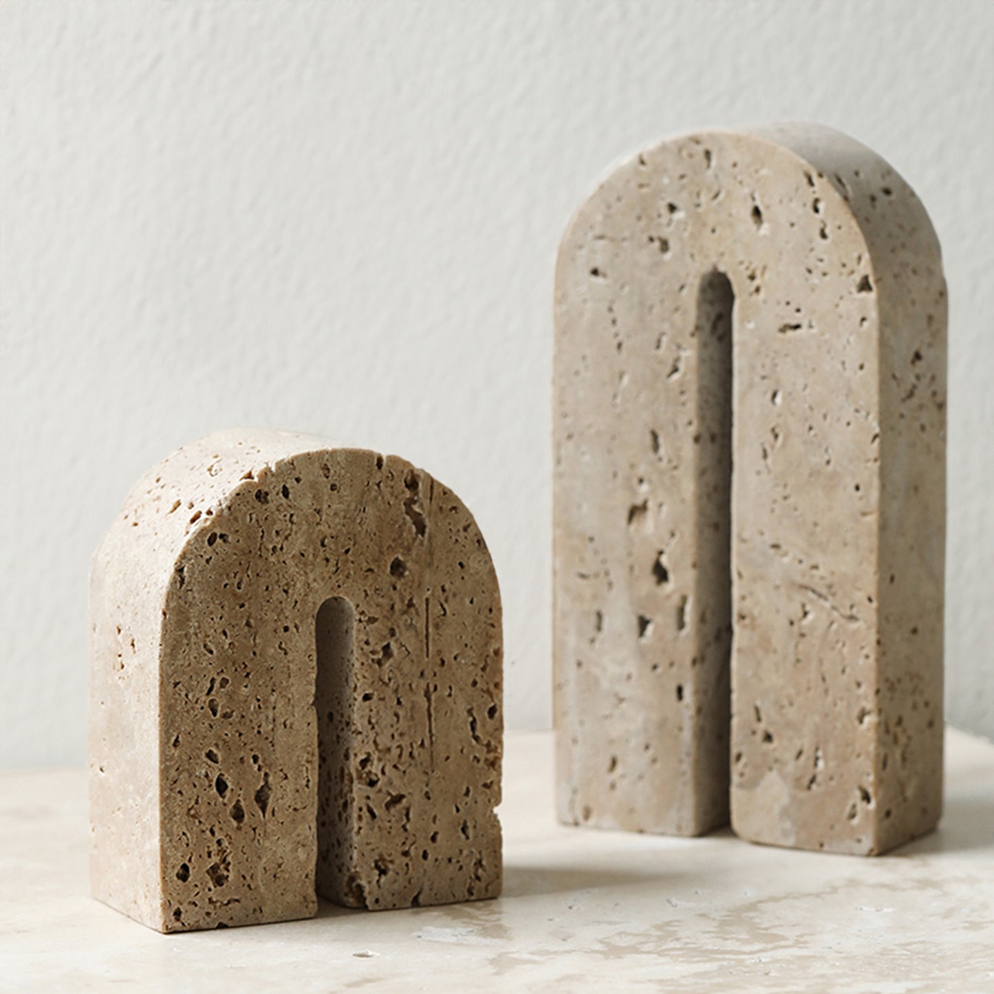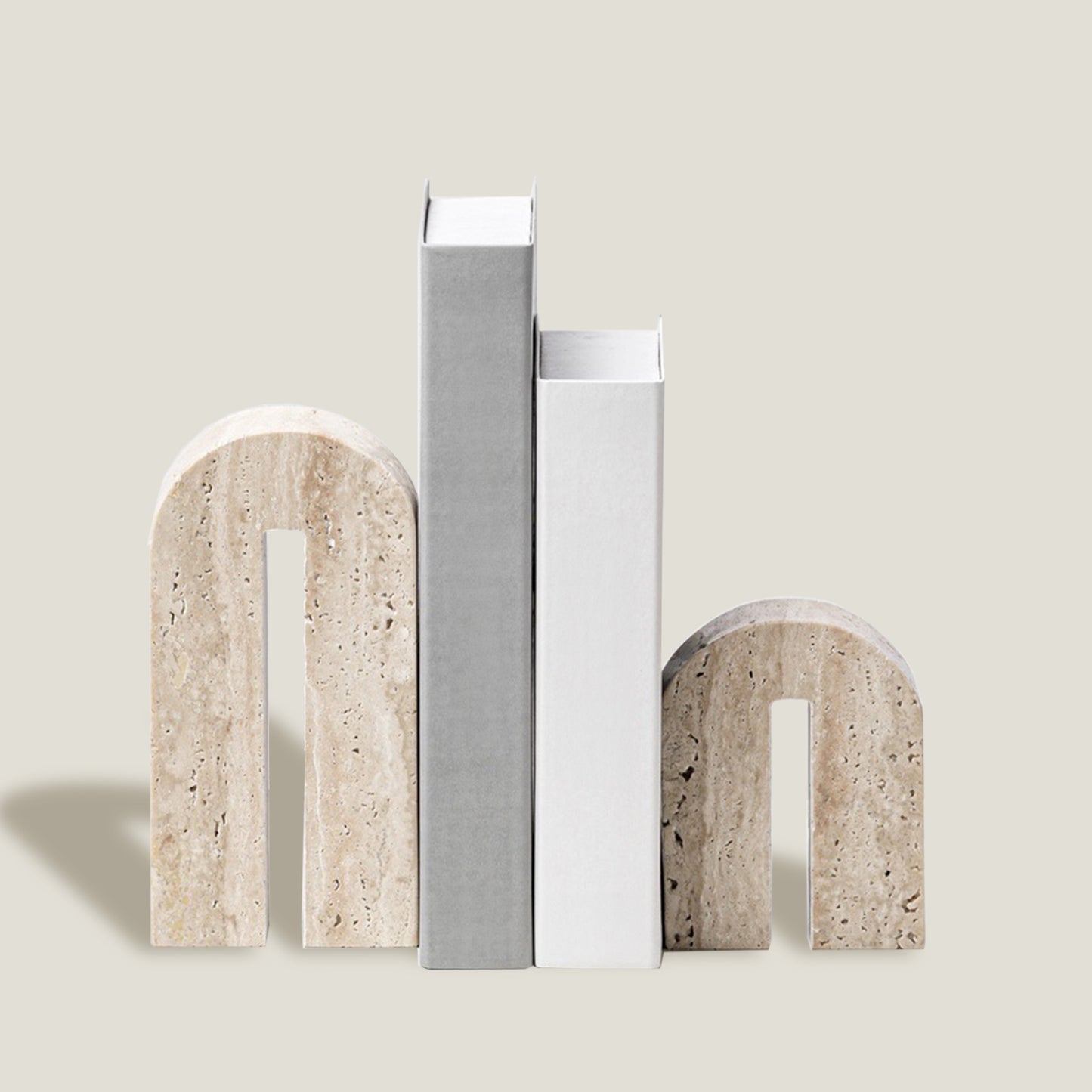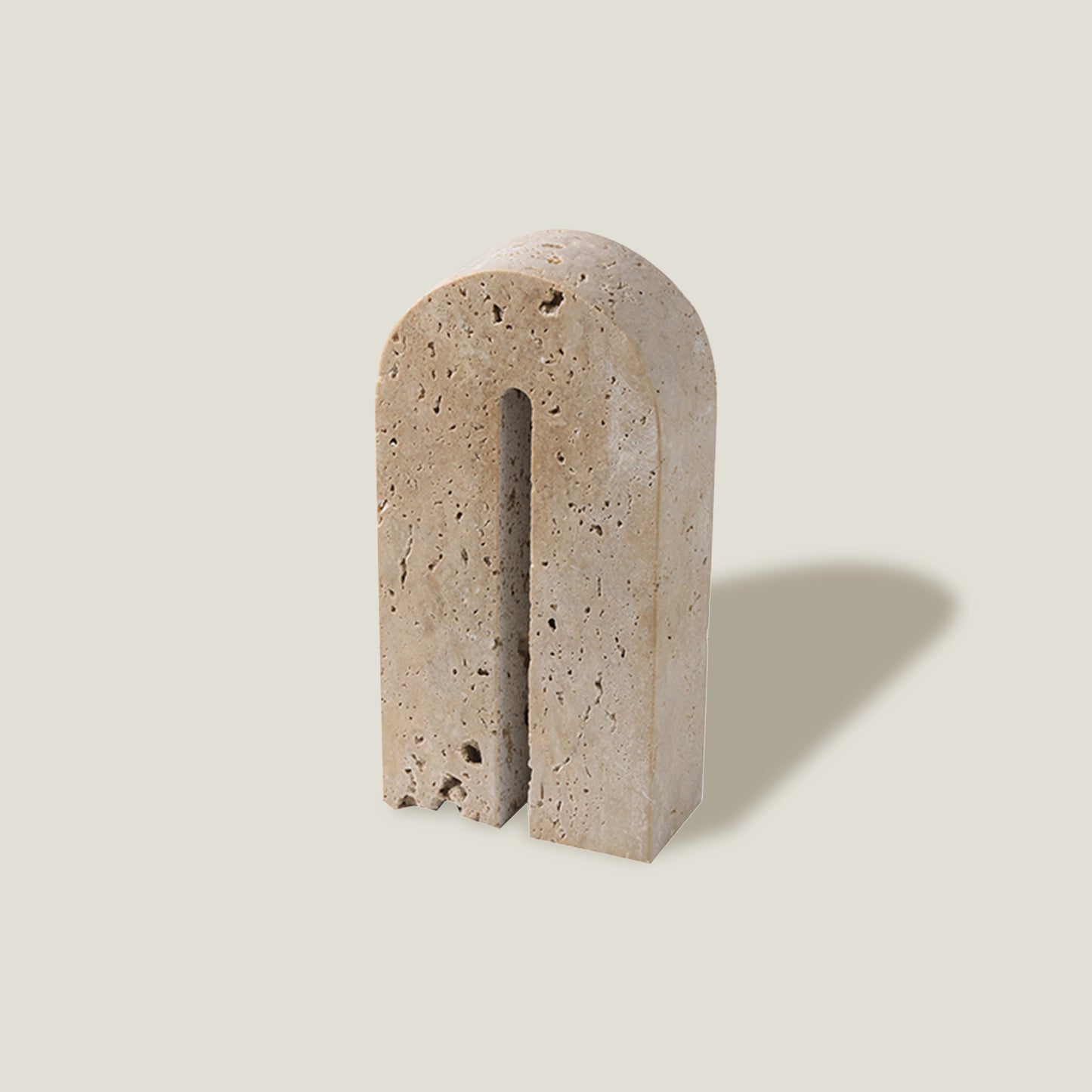 A travertinből készült Arch Stone könyvtámasz időtlen eleganciát kölcsönöz bármely polcnak.