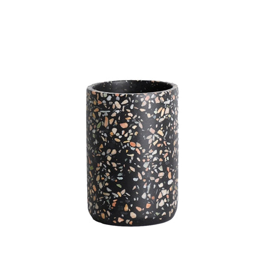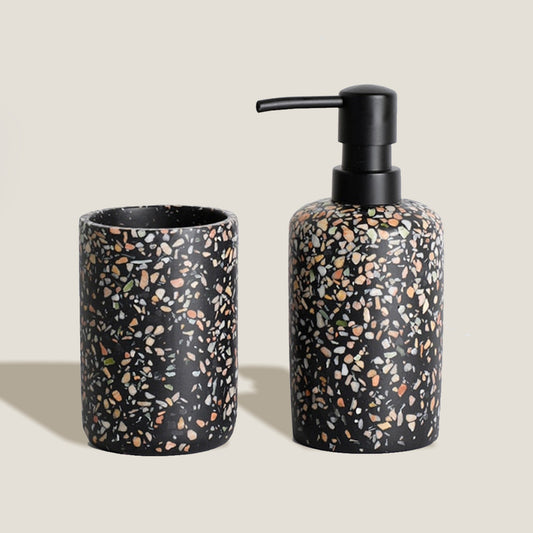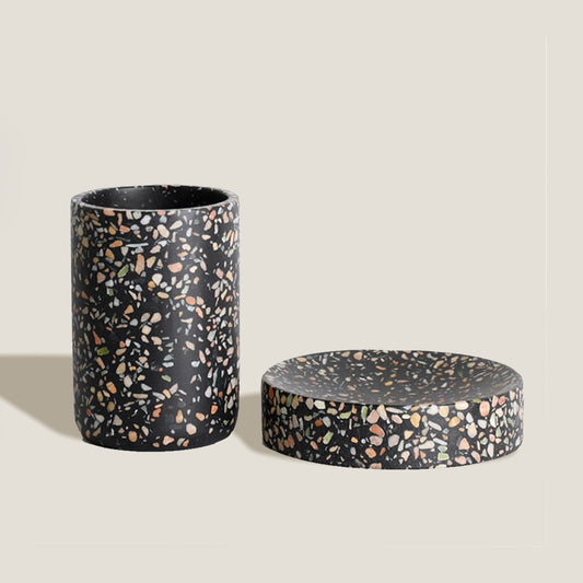 Portaspazzolino e set di sapone in terrazzo nero