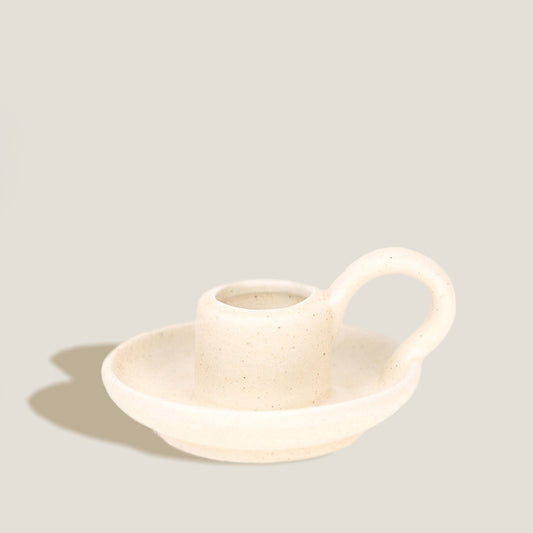 Portacandele in ceramica color crema e sabbia