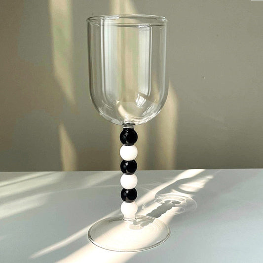 Calici in vetro bianco e nero a pois