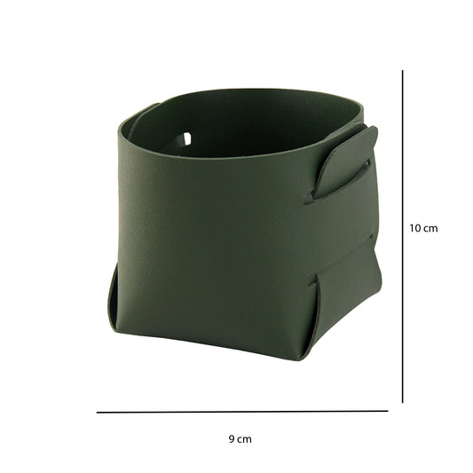 Cestino portaoggetti in pelle verde alga