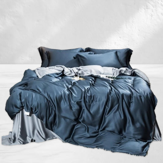 In offertaSet di biancheria da letto in seta blu navy