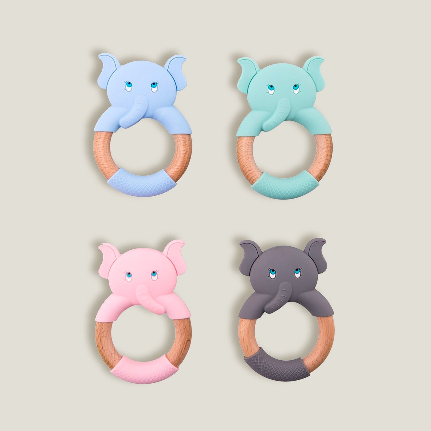 Adorabile giocattolo per bambini a forma di elefante e coniglietto con sonaglio ad anello in legno per bambini e neonati.