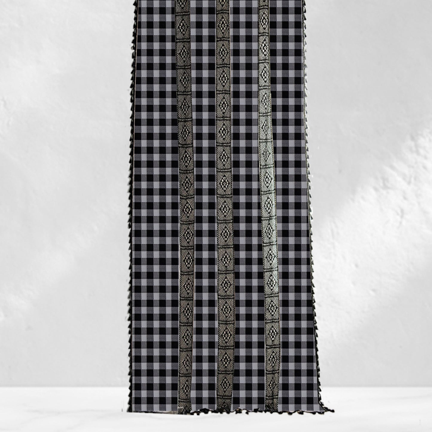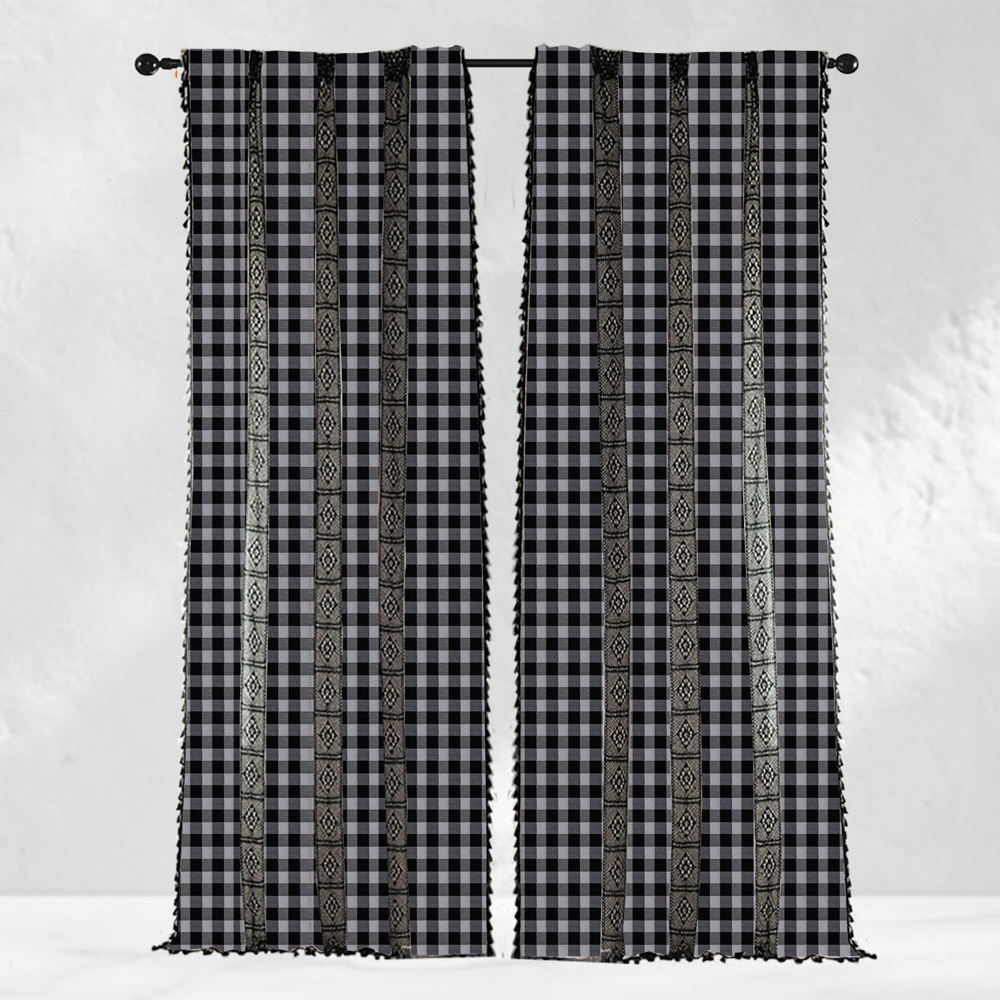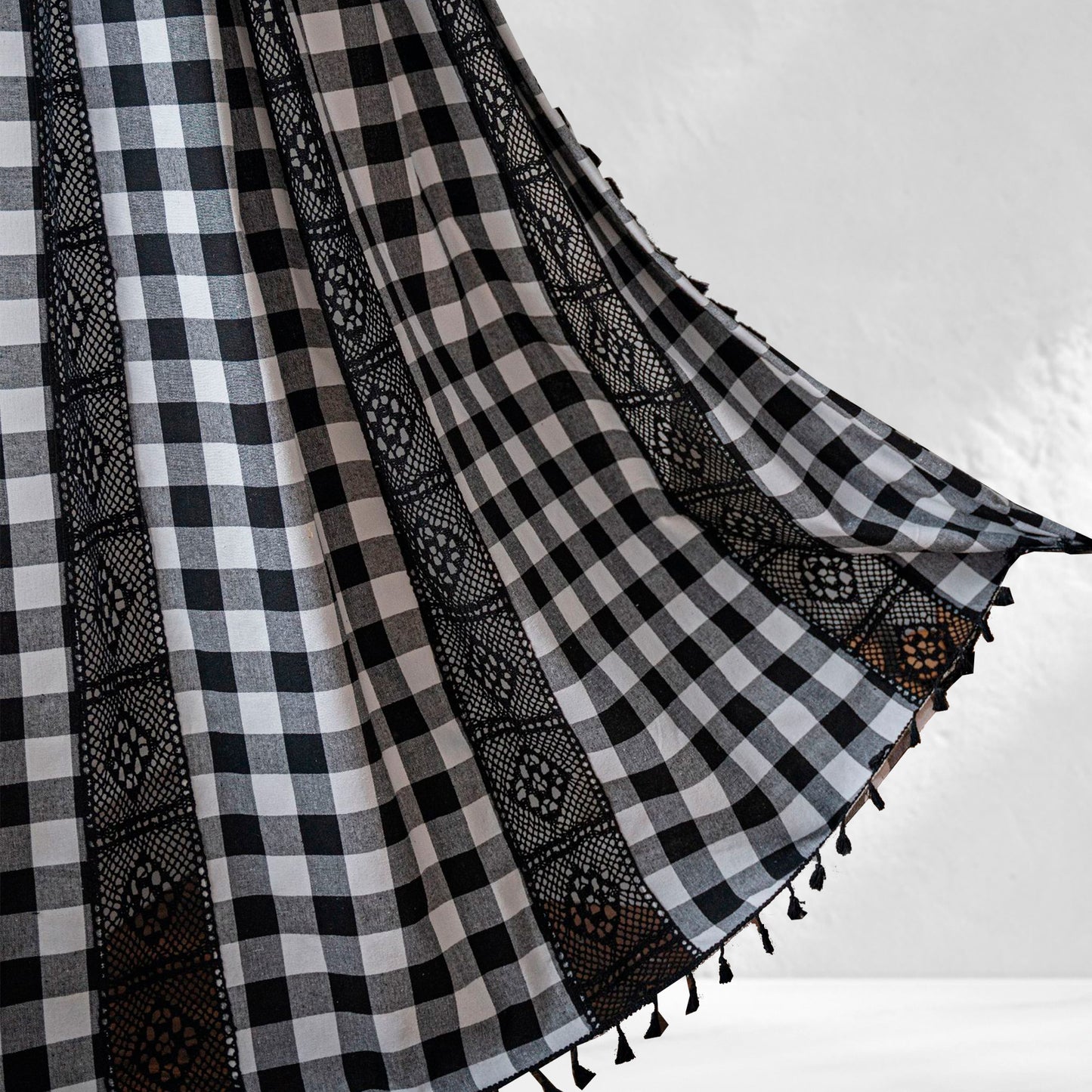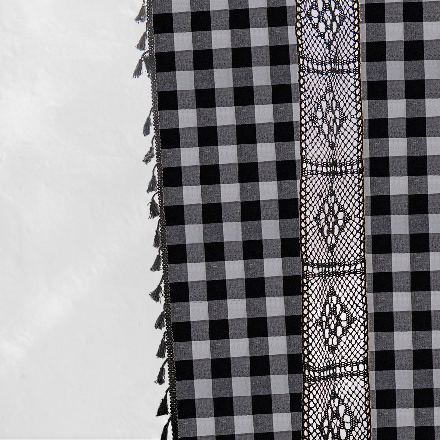 Decora le tue finestre con la raffinata eleganza delle nostre tende all'uncinetto a quadretti neri a quadretti gingham. Realizzate con maestria in morbido e leggero lino di cotone, queste tende sfoggiano un intricato motivo all'uncinetto decorato con nappe, donando un tocco di lusso a qualsiasi ambiente.