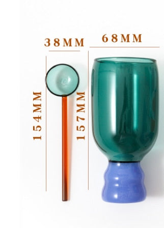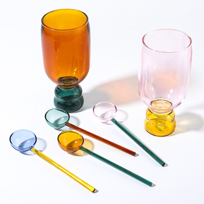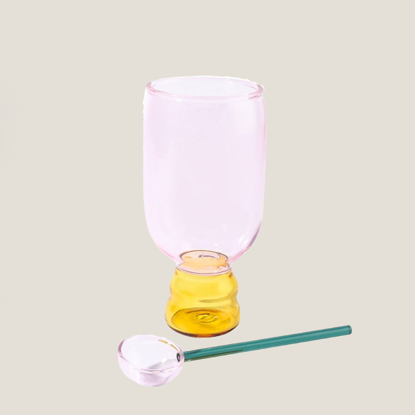 De Cocktail Glass Set bestaat uit een cocktailglas van tweekleurig glas met een lepelset.