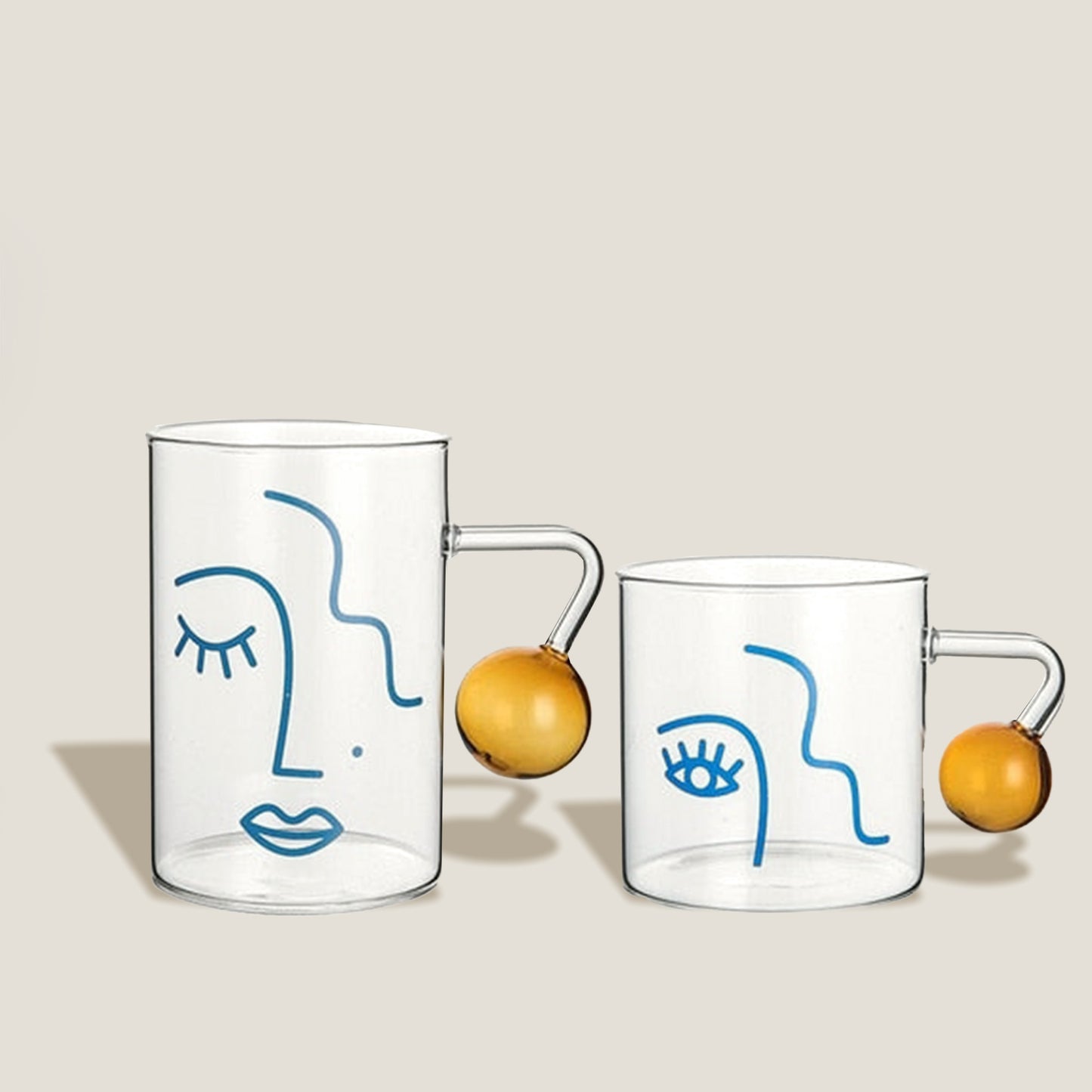 Art Glass Muggen har et utsøkt mønsterdesign laget i gjennomsiktig glass med en unik form. Et virkelig kunstnerisk design for hvert måltid.