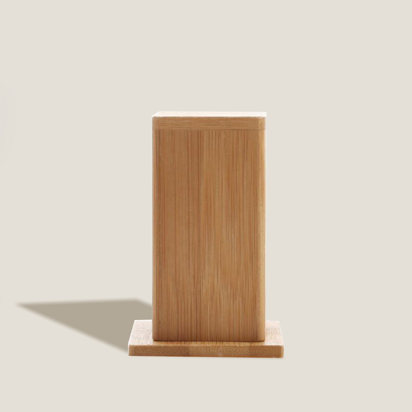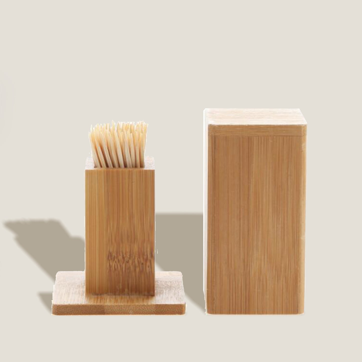 Bambus tannpirkerholderen har et vakkert design laget av naturlig tre, hvert mønster er unikt. Den inkluderer også lokket for å beskytte tannpirkerne.
