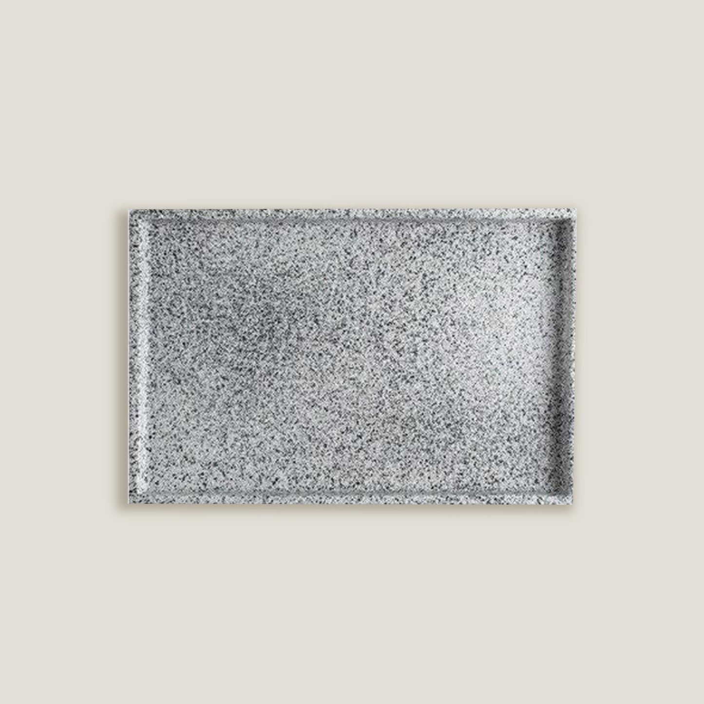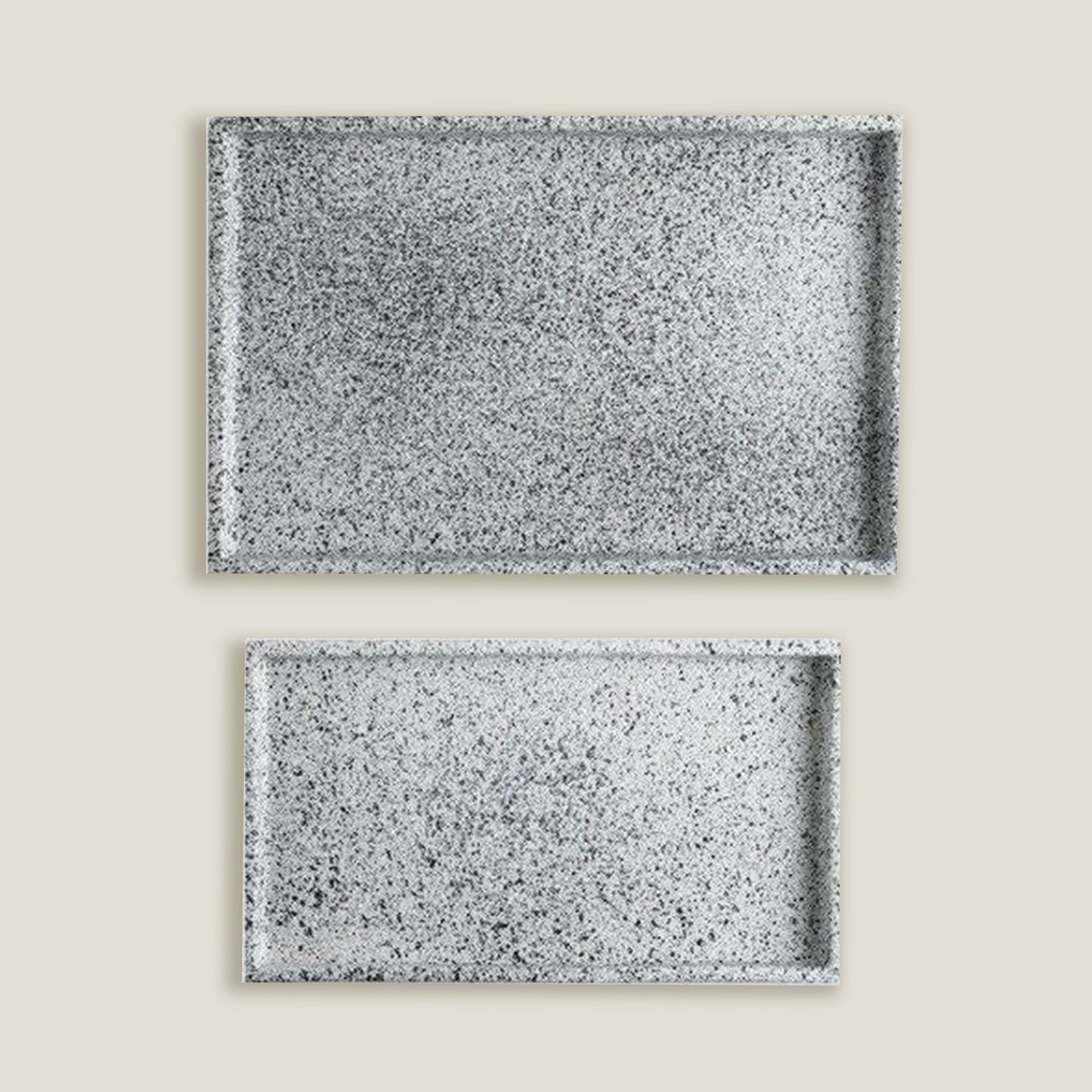 Granittsteinsserviset har en vakker grå granitttekstur og -mønster, og middagstallerkenene er en favoritt i butikken vår på grunn av sin allsidige stil.
