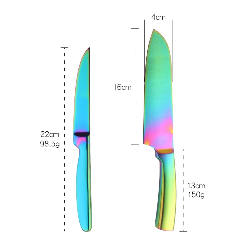 Colors Metal Kitchen Knives Set har en speilpolert tekstur med en palle med forskjellige farger tilgjengelig. Settet inneholder to deler (en kokkekniv og en biffkniv).