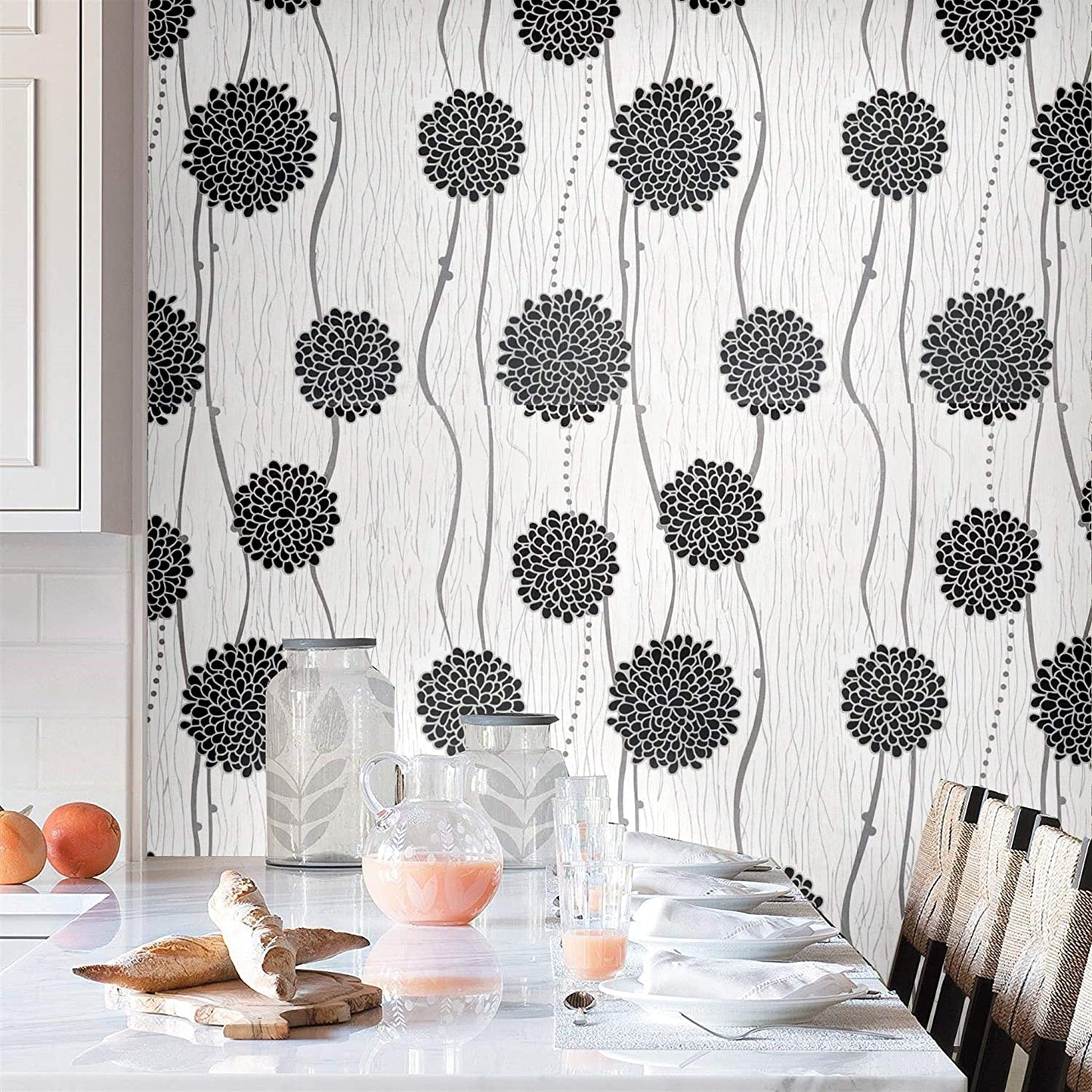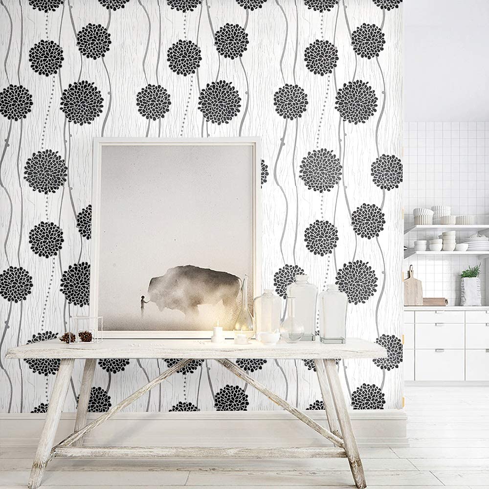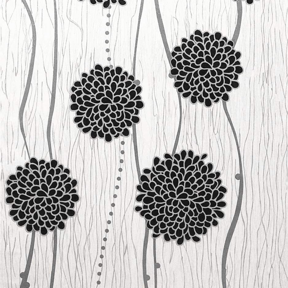 Floral Black Wallpaper har et vakkert hvitt og svart blomsterillustrasjonsmønster.