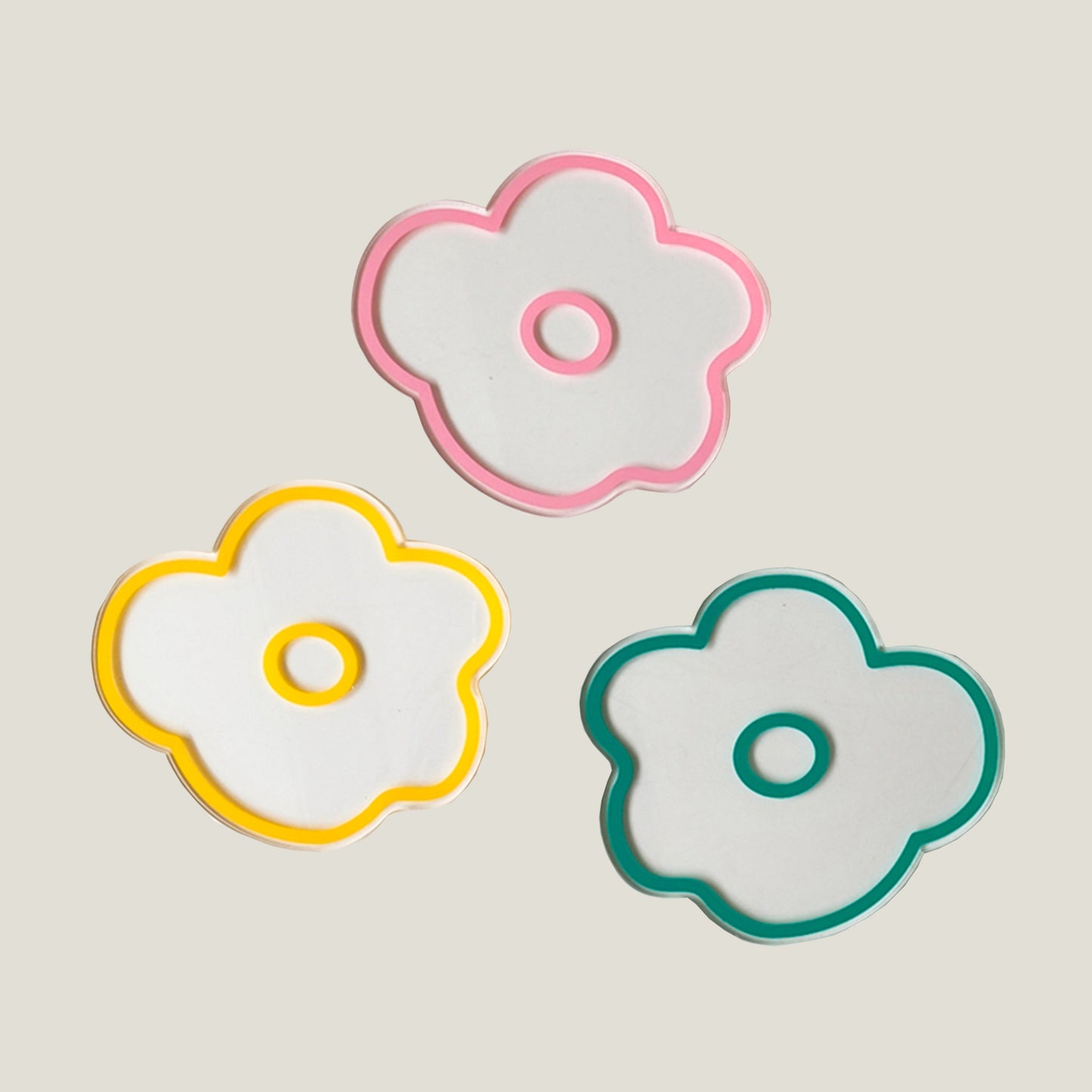 Flower Coasters er et fargerikt tillegg til spisebordsdekorasjonen din. Akrylmaterialet er slitesterkt og vanntett.