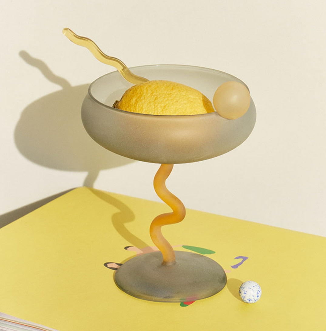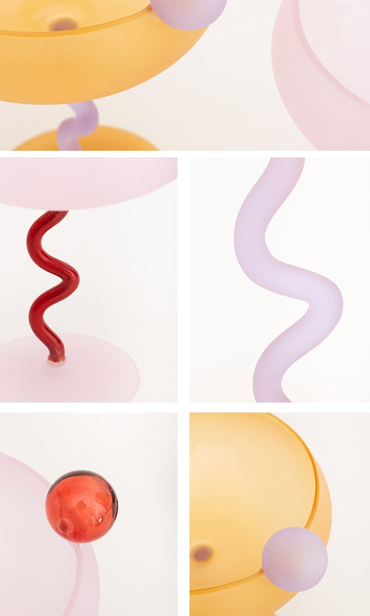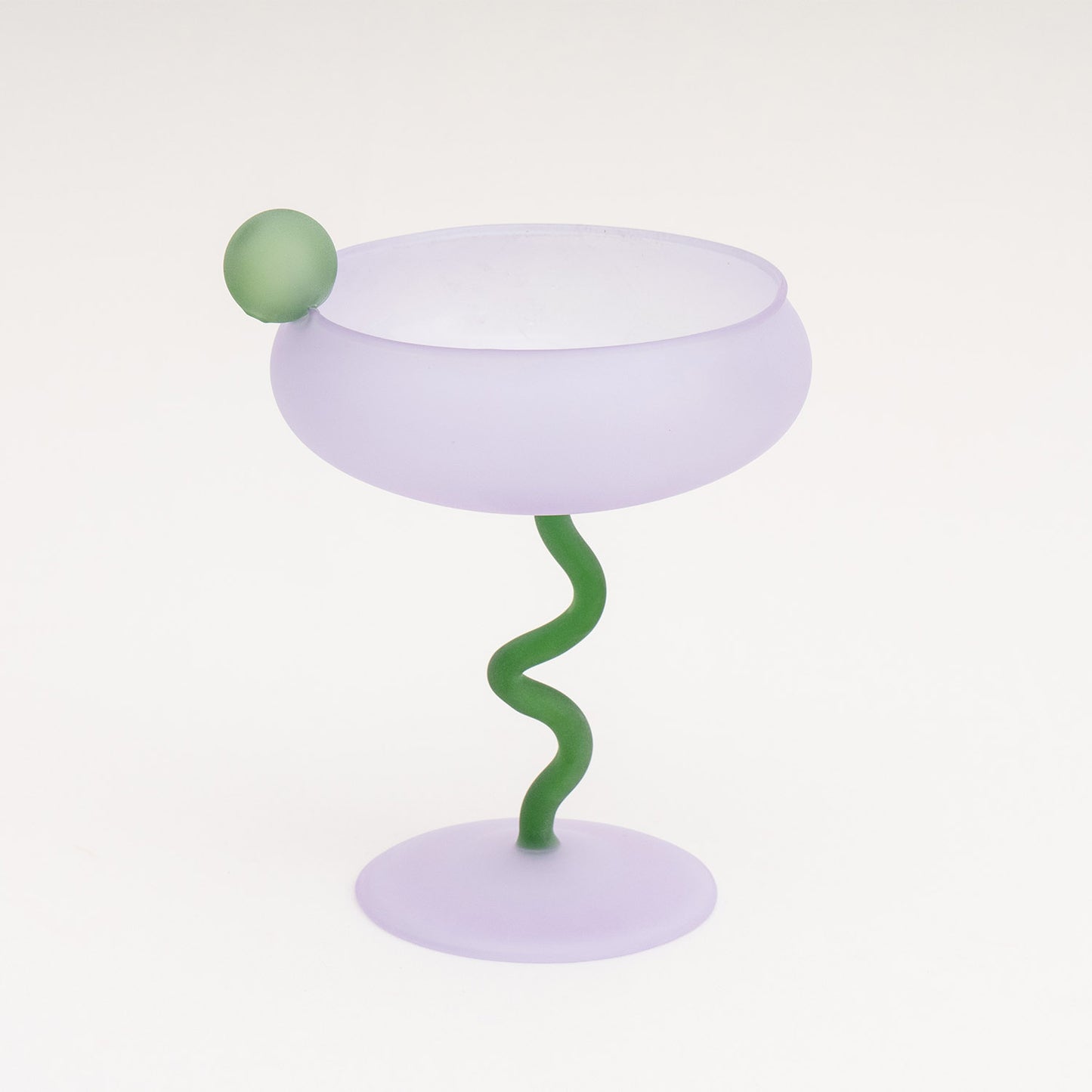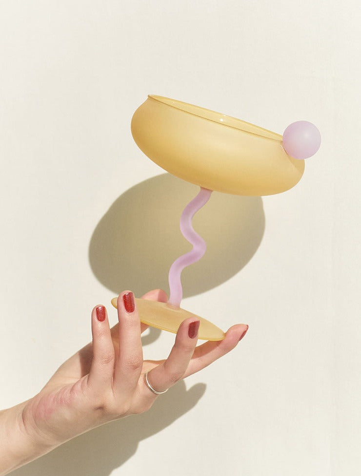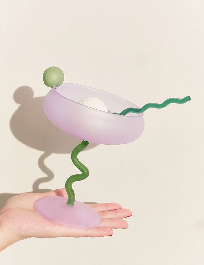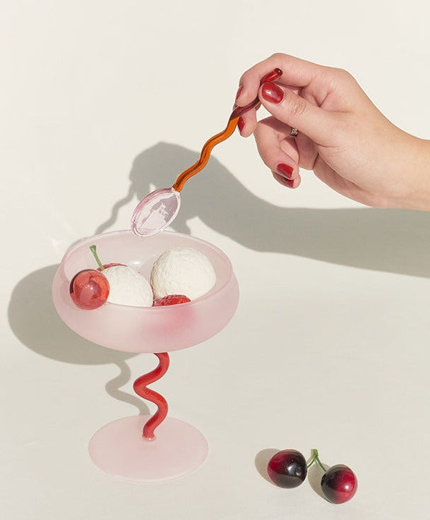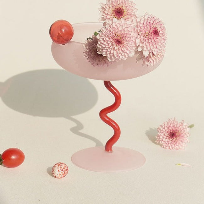 Frosted Strawberry Goblet har en frostet ugjennomsiktig finish.