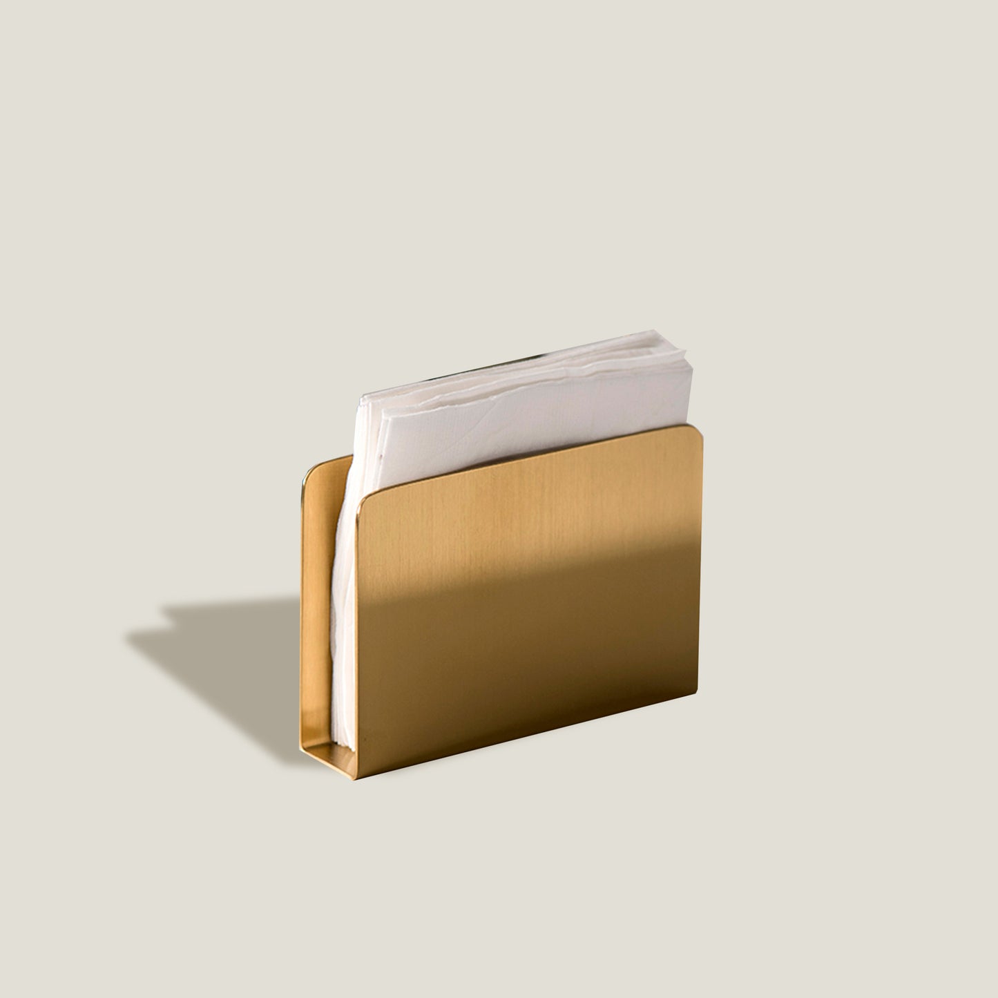 Gold rektangel serviettholder har en minimalistisk stildesign med metall og gullfinish. Dette stykket er allsidig for styling av spisebordet ditt.