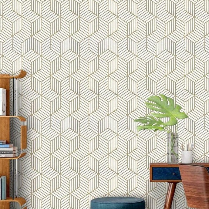 Gold Hexagon Wallpaper har et vakkert geometrisk mønster, med et selvklebende materiale, ideelt for innvendig romvegg.