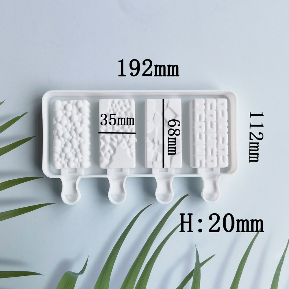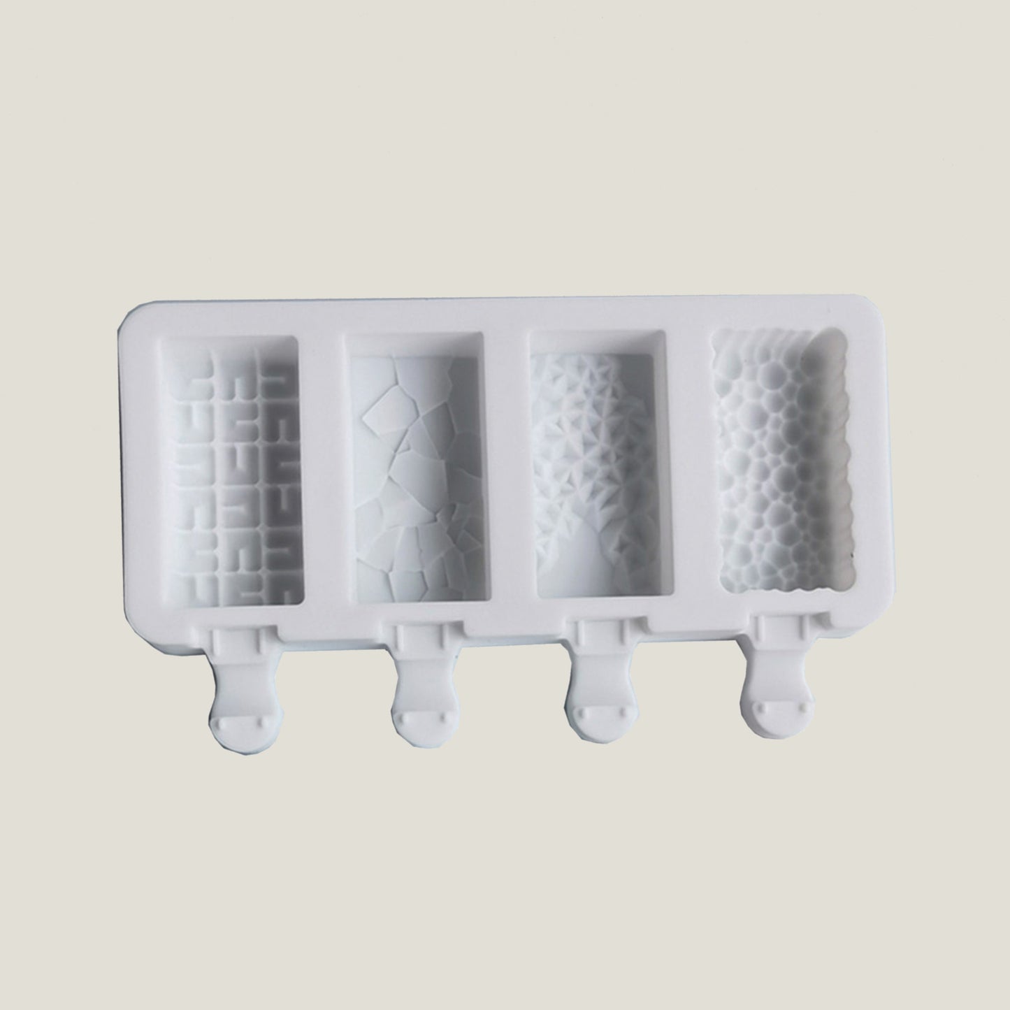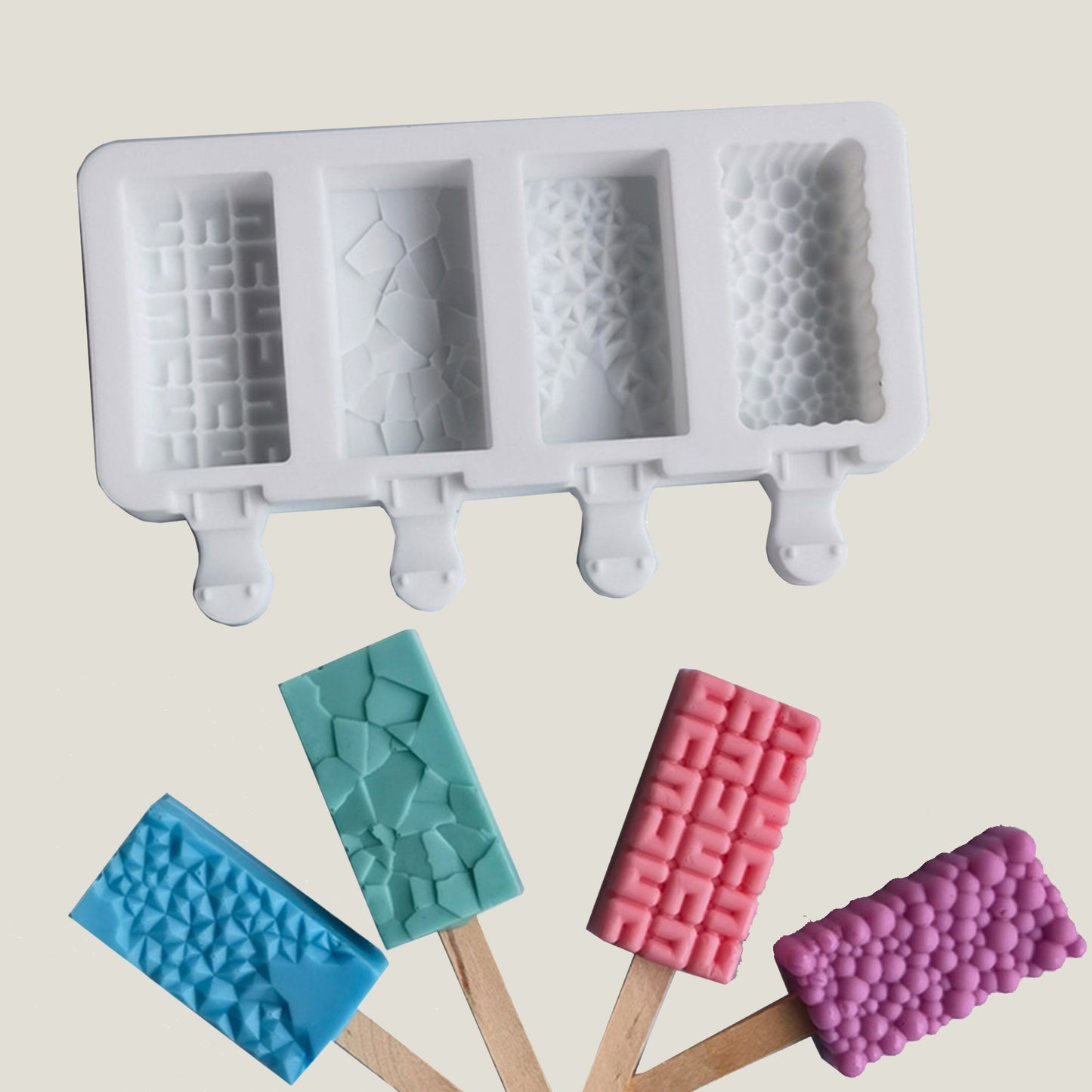 Lolly Pop silikonformen har en myk, bøybar tekstur med et avkjølt rektangulært formmønster, ideelt for baking av desserter og isbakst.