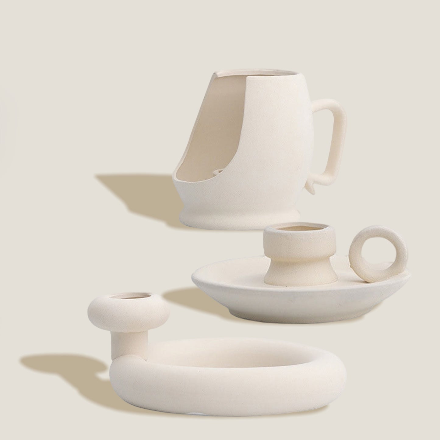 Den sandhvite kopplysestaken er en favoritt fra butikken vår for sin design og unike form, tilgjengelig for kjøp i en myk fargepall med en naturlig umalt finish.