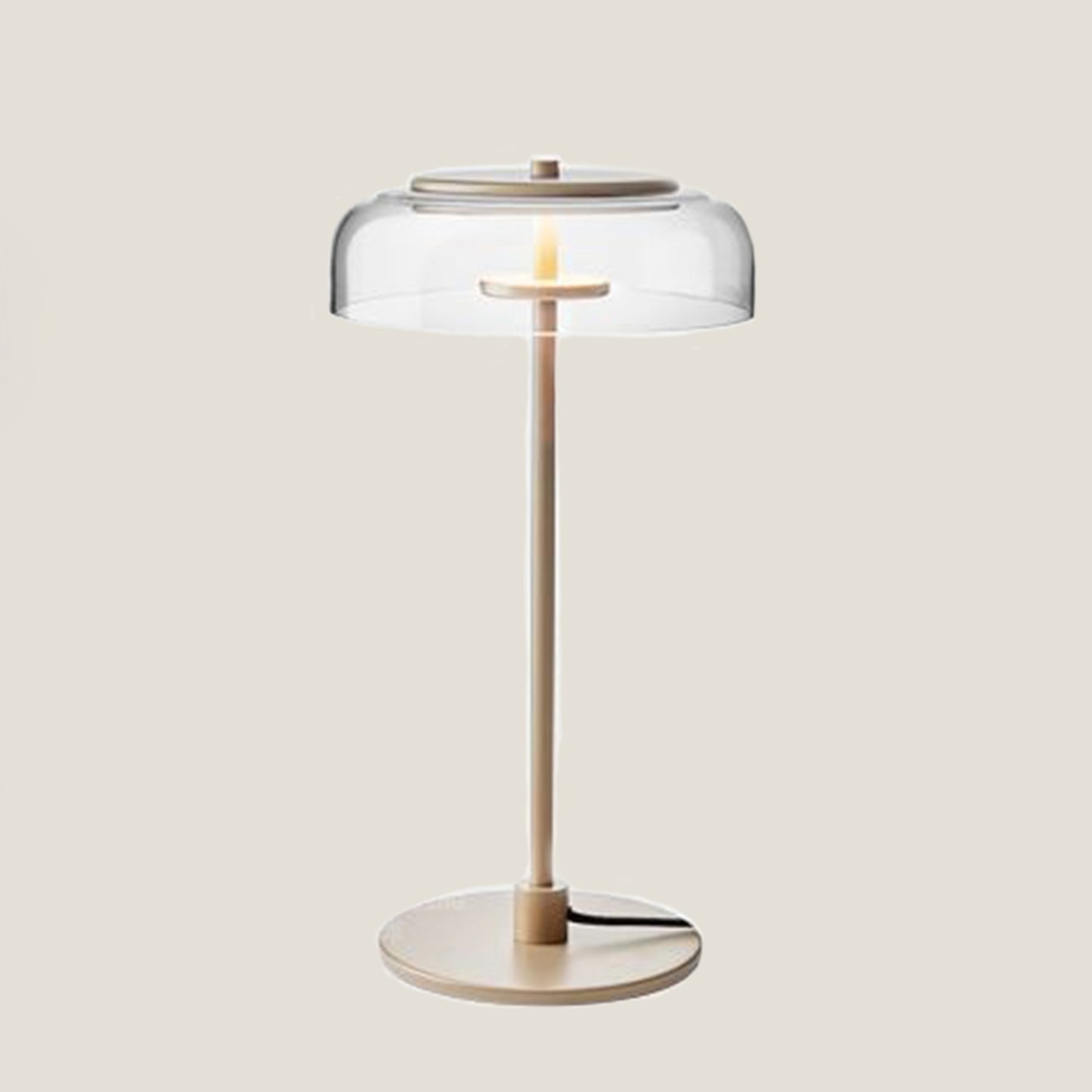 Gullglasslampen har en unik soppinspirert form laget med glass og jern, tilgjengelig for kjøp av glassgulv-, bord-, tak- og vegglamper