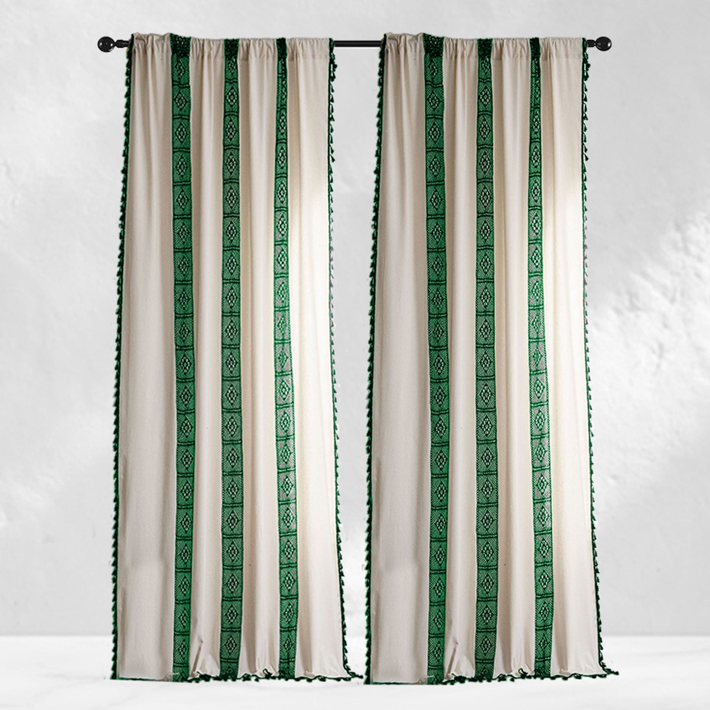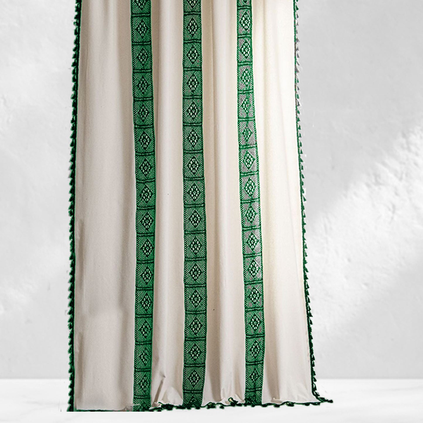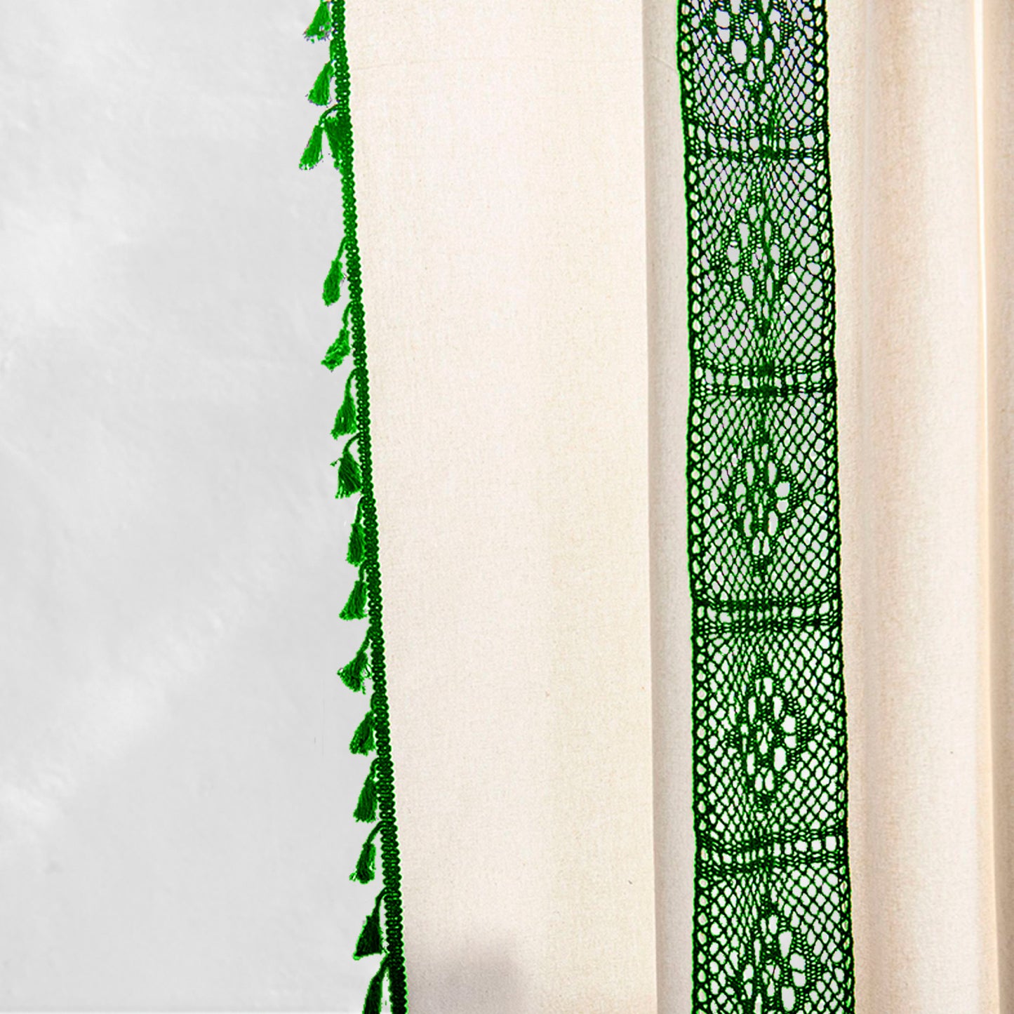Udekoruj swoje okna pięknem naszych zielonych, szydełkowanych zasłon. Wykonane z miękkiej, zwiewnej bawełny lnianej, te zasłony charakteryzują się misternym szydełkowym wzorem ozdobionym frędzlami, nadając każdej przestrzeni odrobinę luksusu.