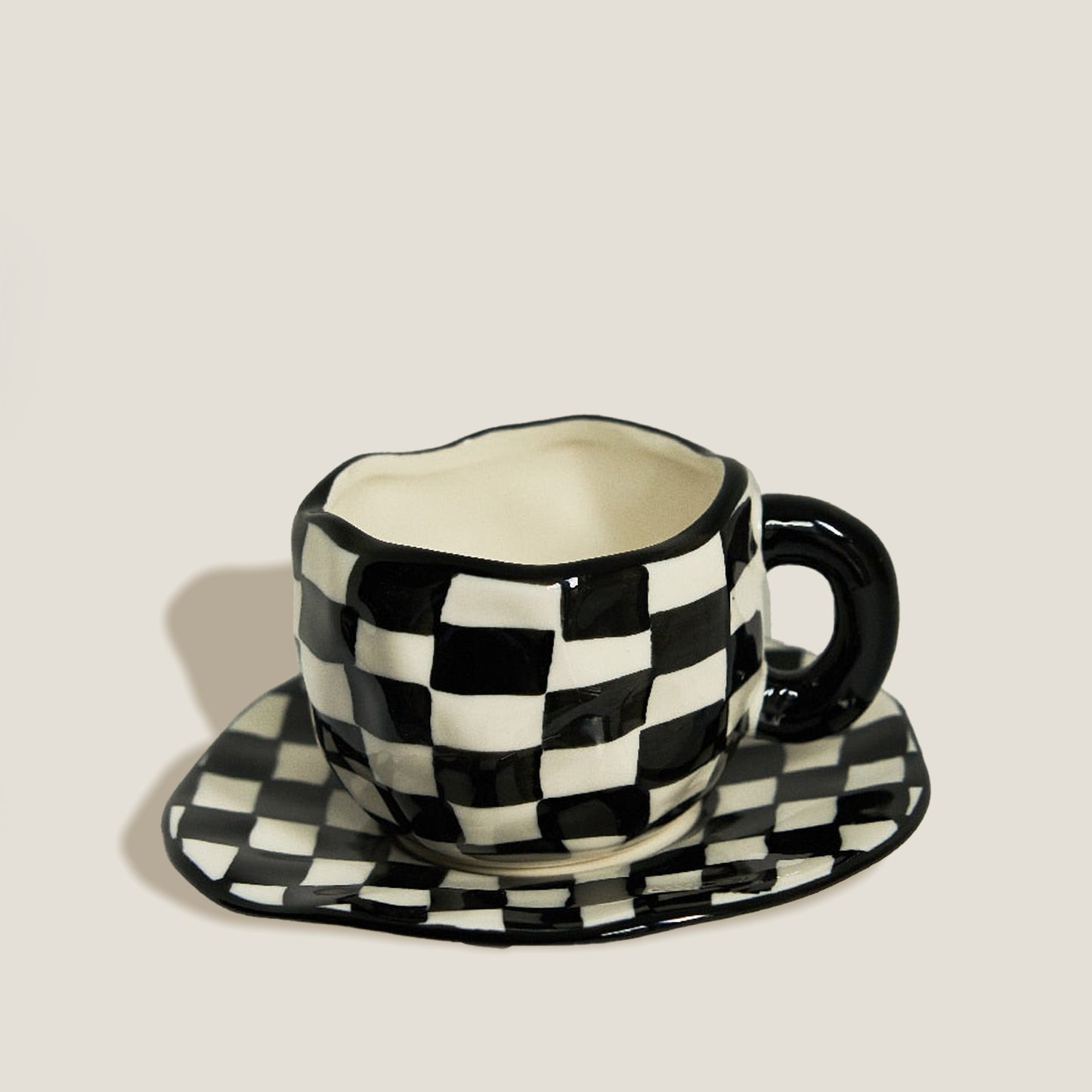 The Black Plaid Mugs have a beautiful hand-painted black square checkered plaid pattern. This gorgeous ceramic cups are favorite from our store.
