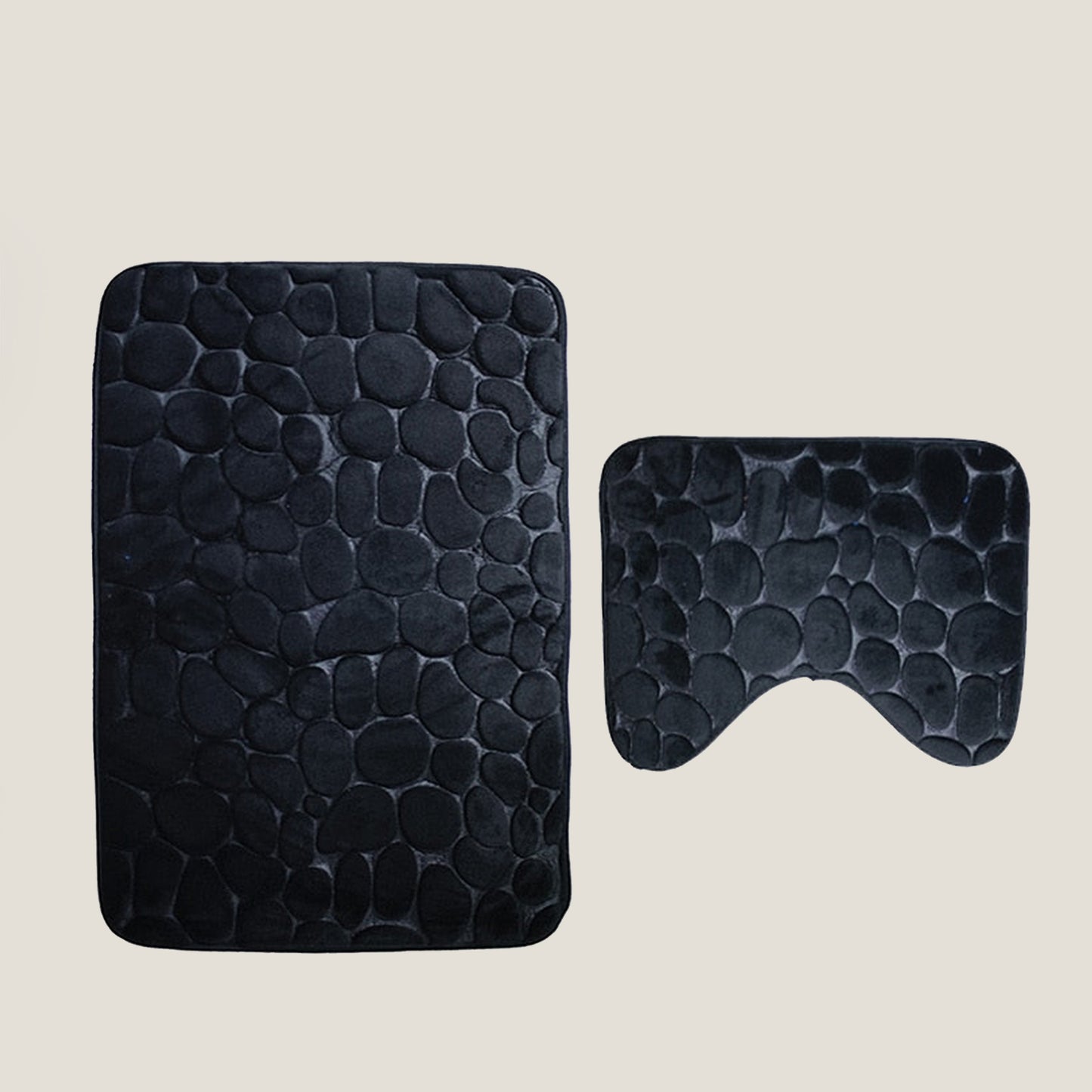 Embossed Bathroom Bath Mat Set with Toilet Rug, Lid Cover, and Bathroom Mat