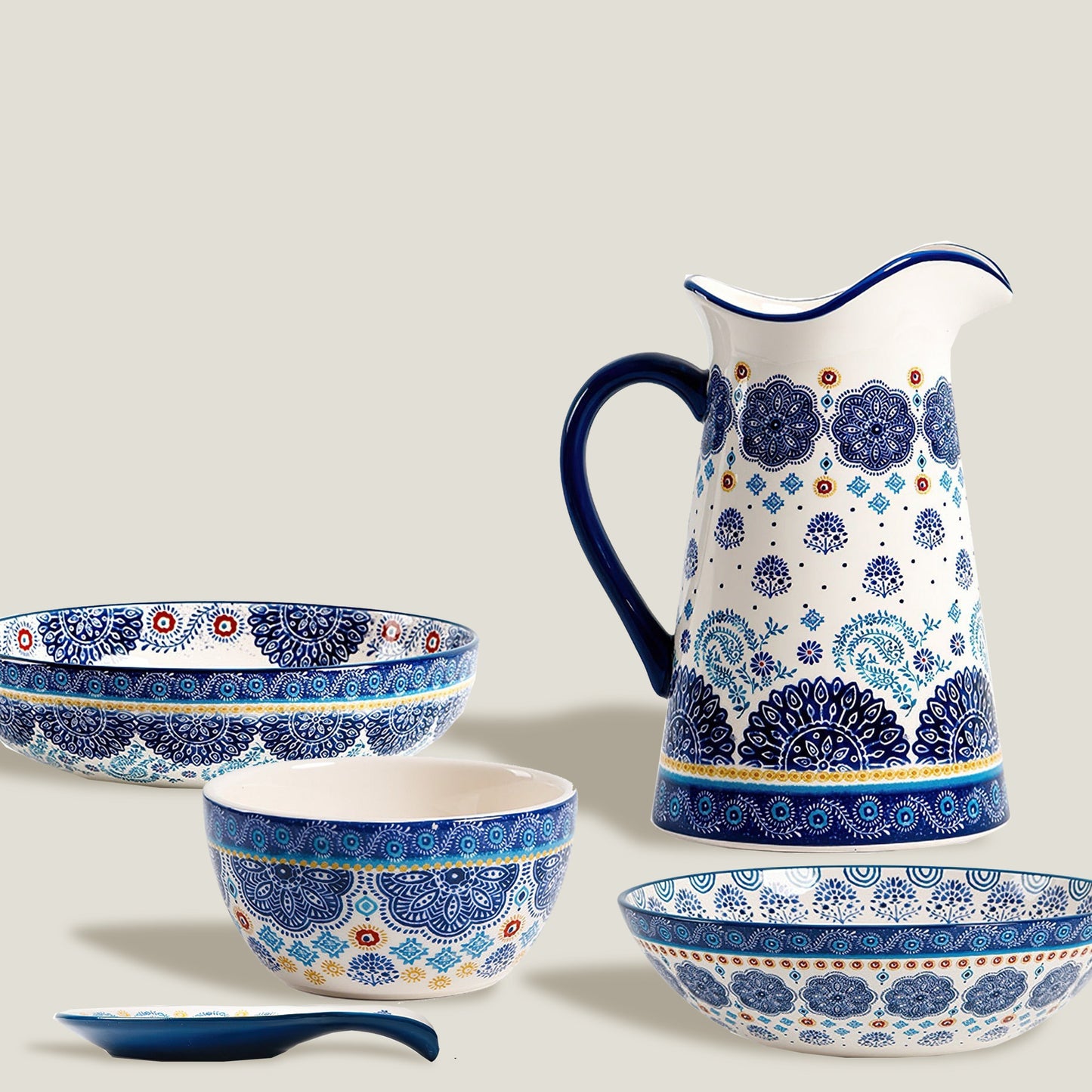 Experience vibrant artistry in your home with these eye-catching Blue Oaxaca Kettle. Crafted of ceramic with captivating blue mosaic patterns,