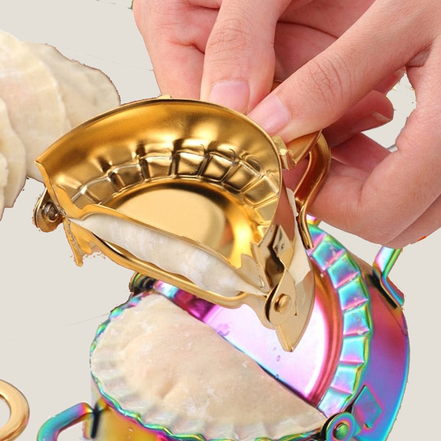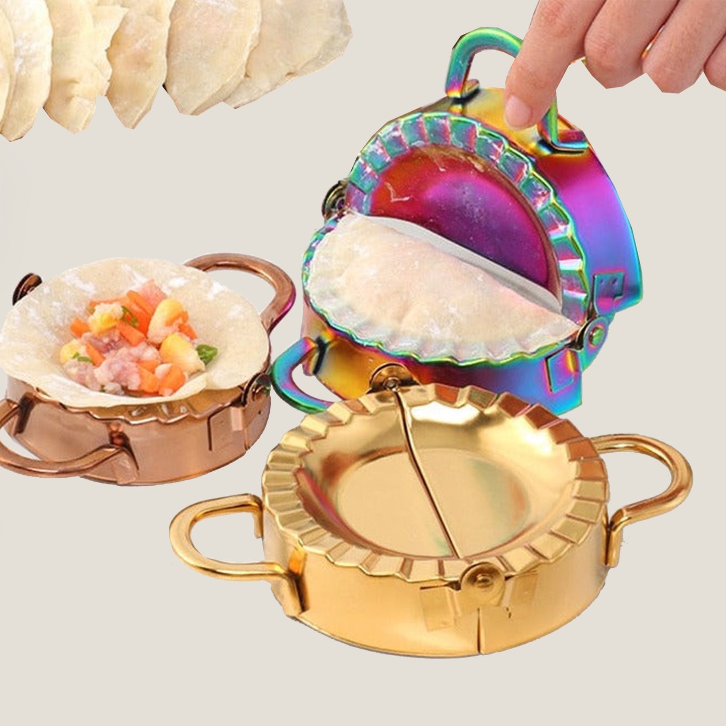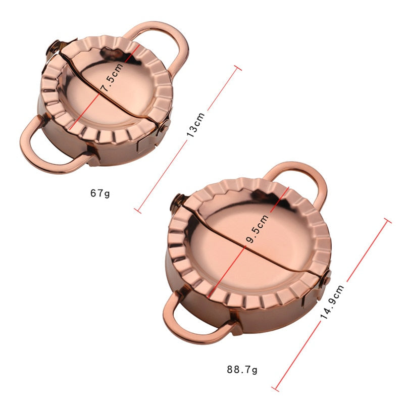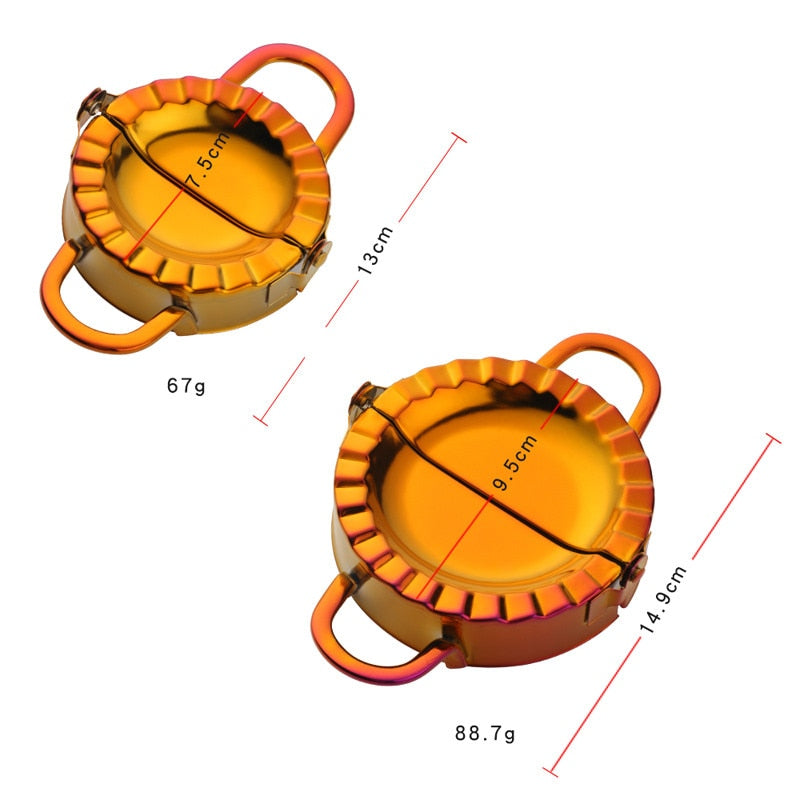 The Dumplings Mold Set has a convenient design specially created for making dumplings. Available in beautiful different colors with a mirror-polished finish, and in two different sizes. The set includes 2 Pieces.
