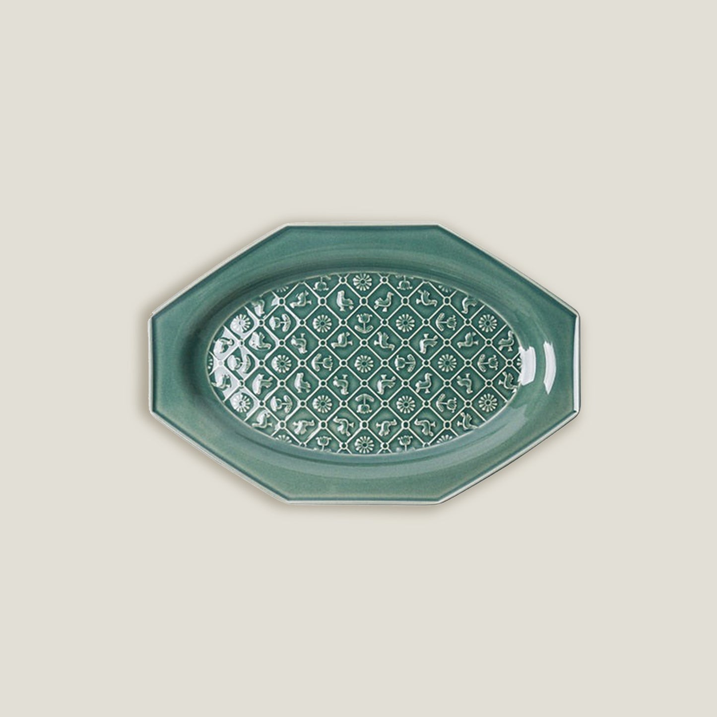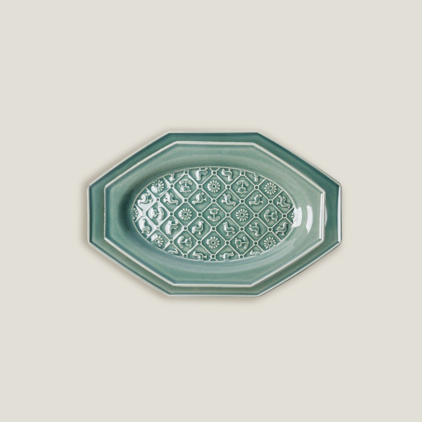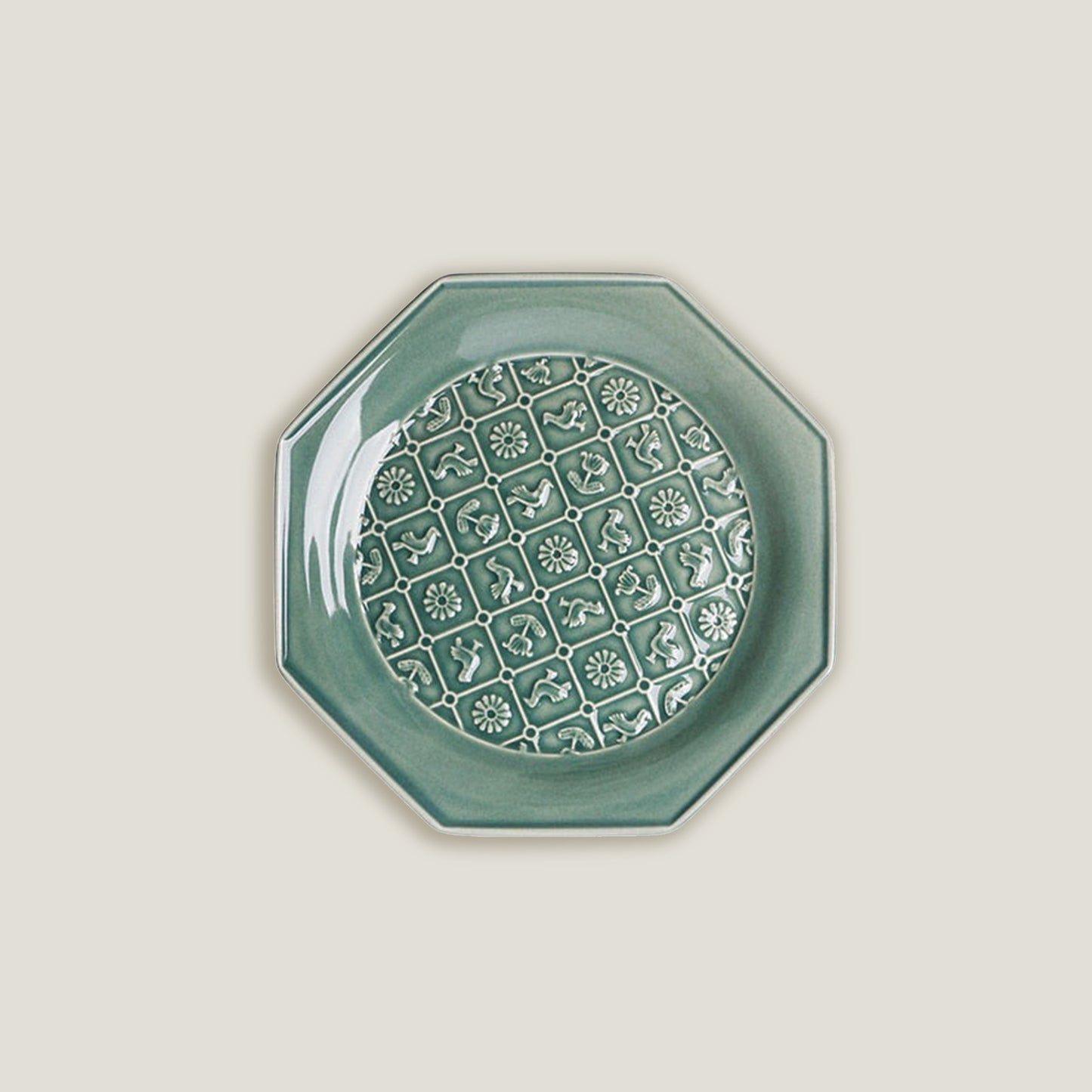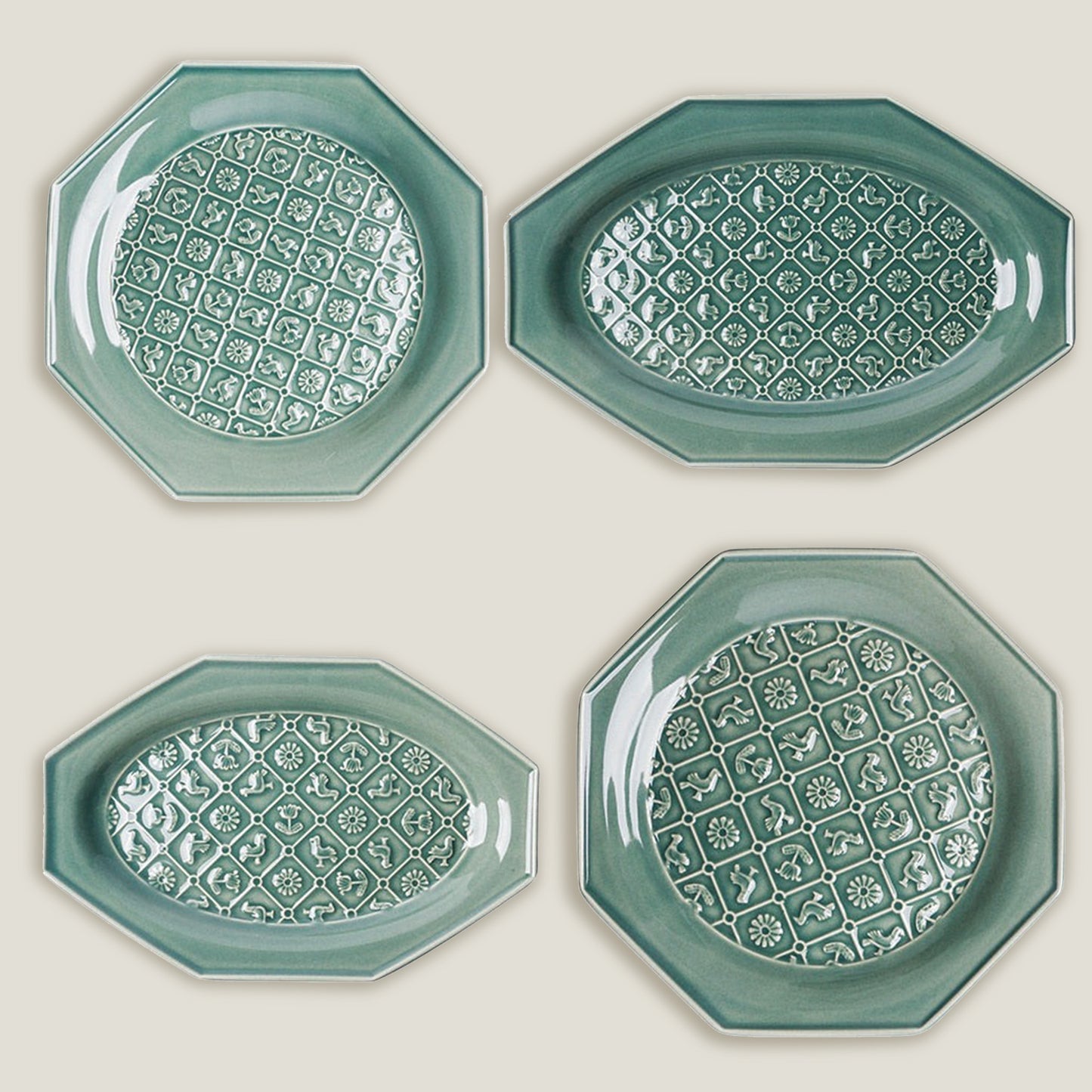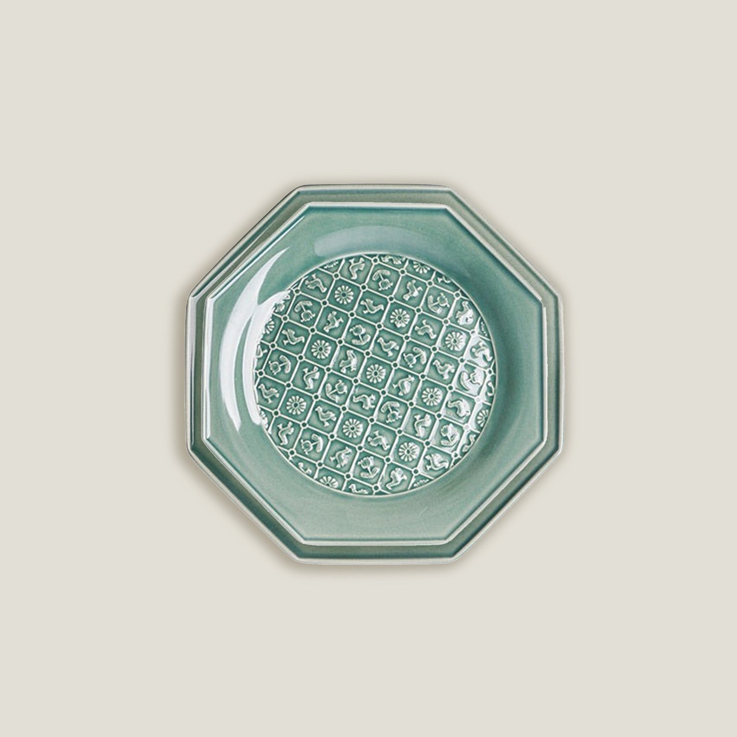 Green Octagonal Ceramic Embossed Plates