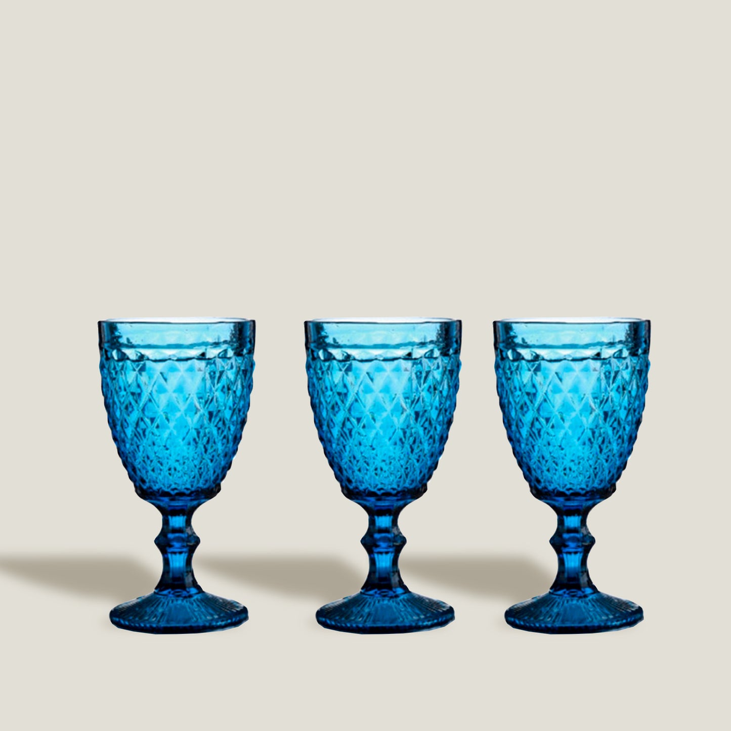 3 Pieces Set Gorgeous Colored Glass engraved Goblets