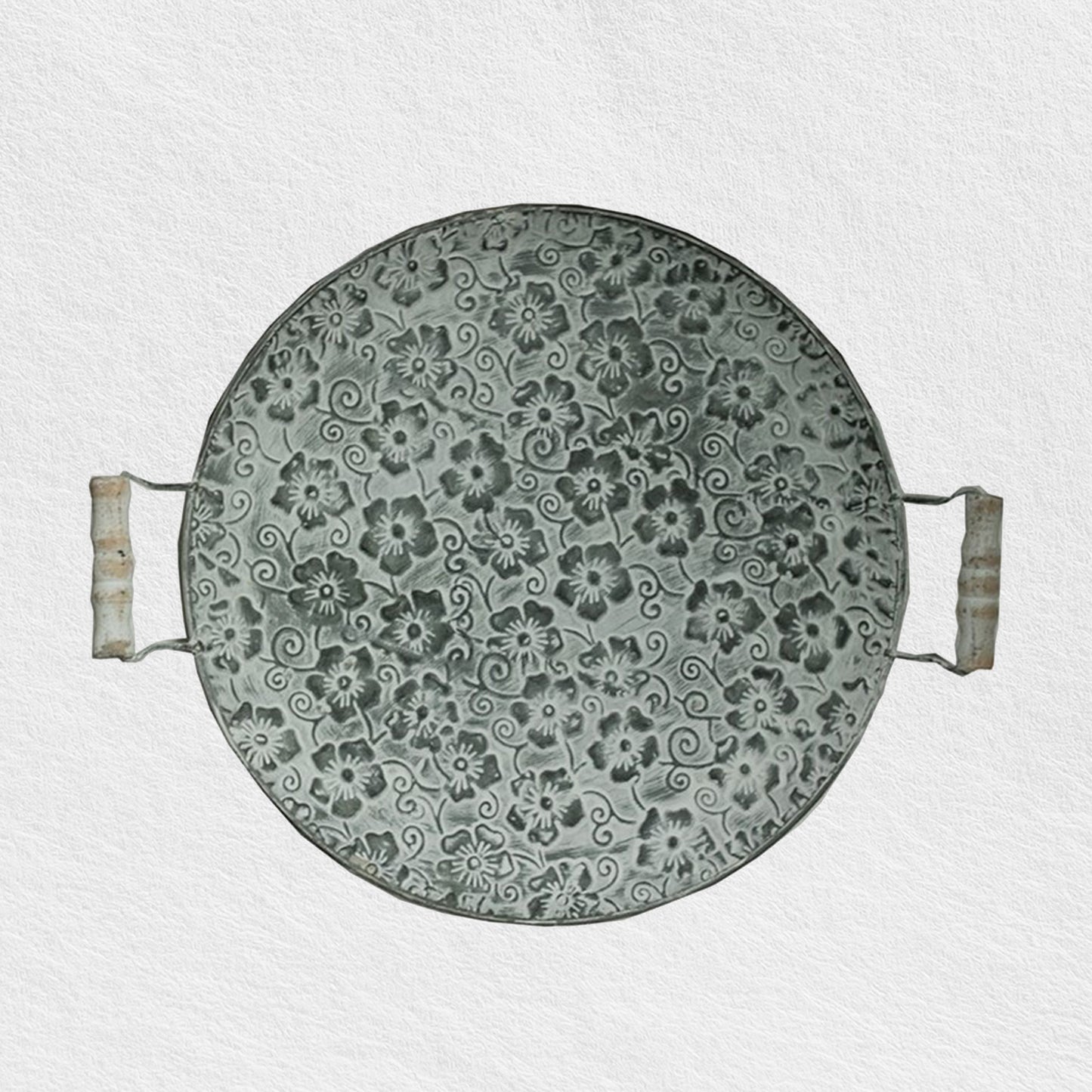 The Floral Tray has beautiful floral embossed pattern, this round serving tray is a favorite from our store.