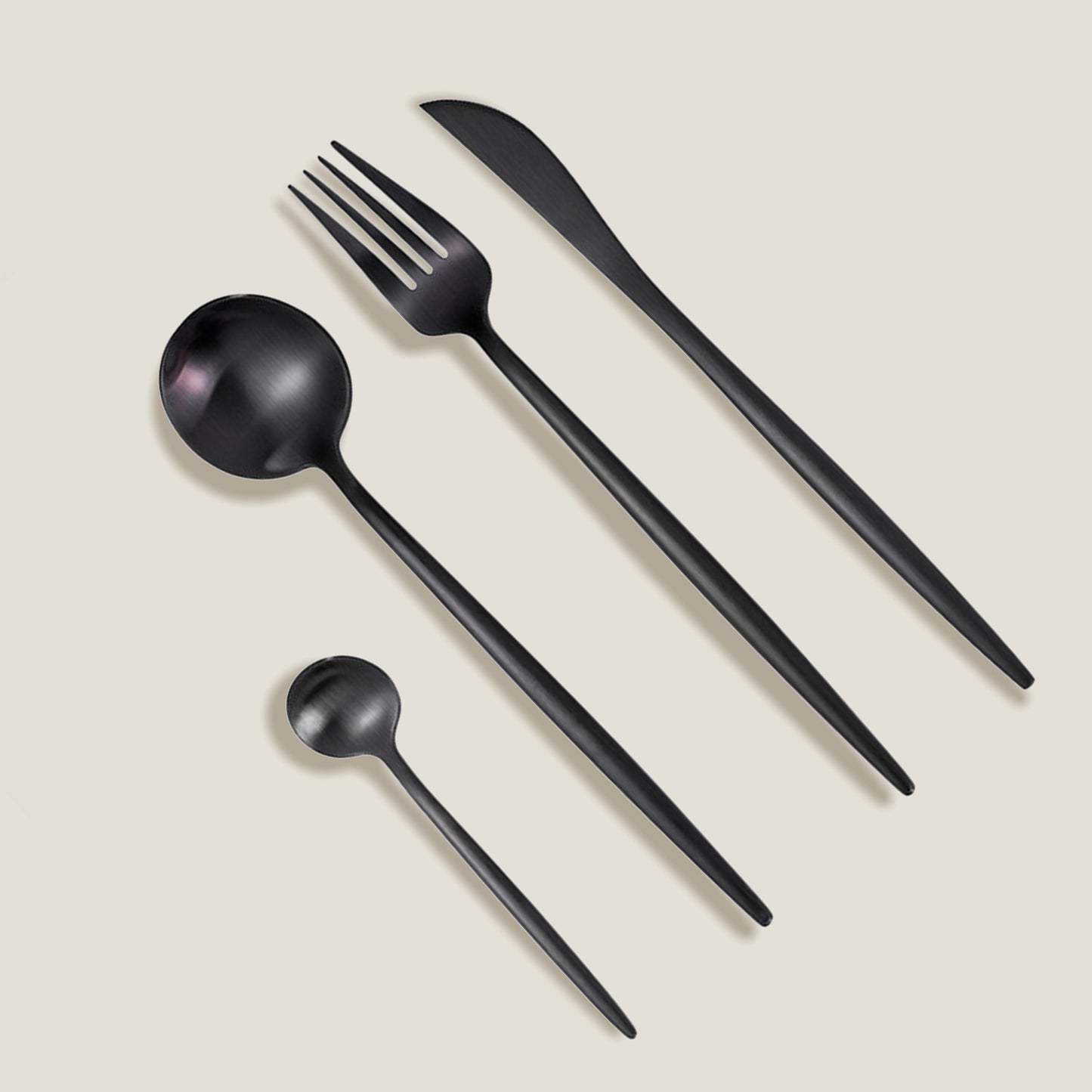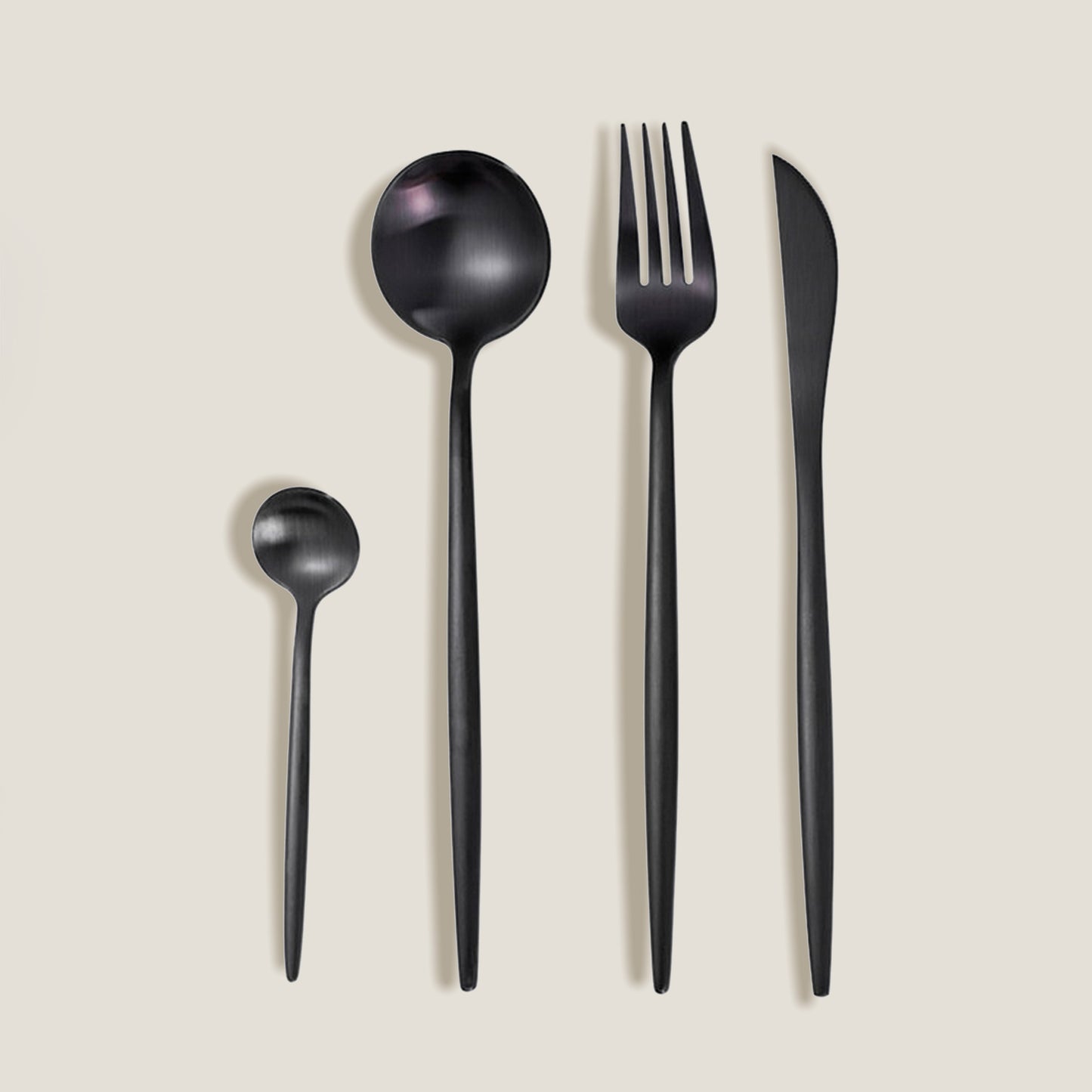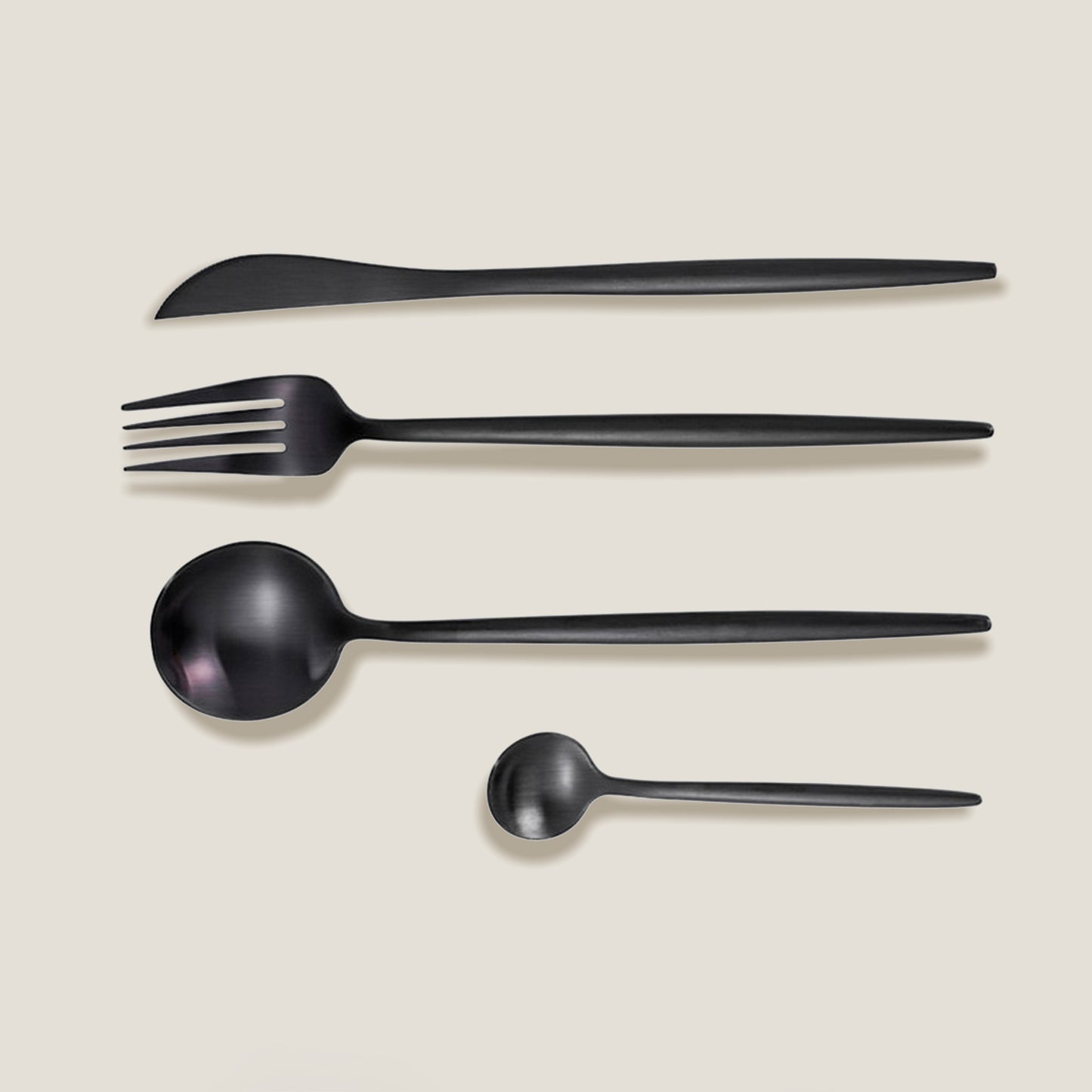 The Line Metal Cutlery Set Stand out for its sophisticated and simply beautiful design. Perfect for everyday use and versatile to combine with your table setting.