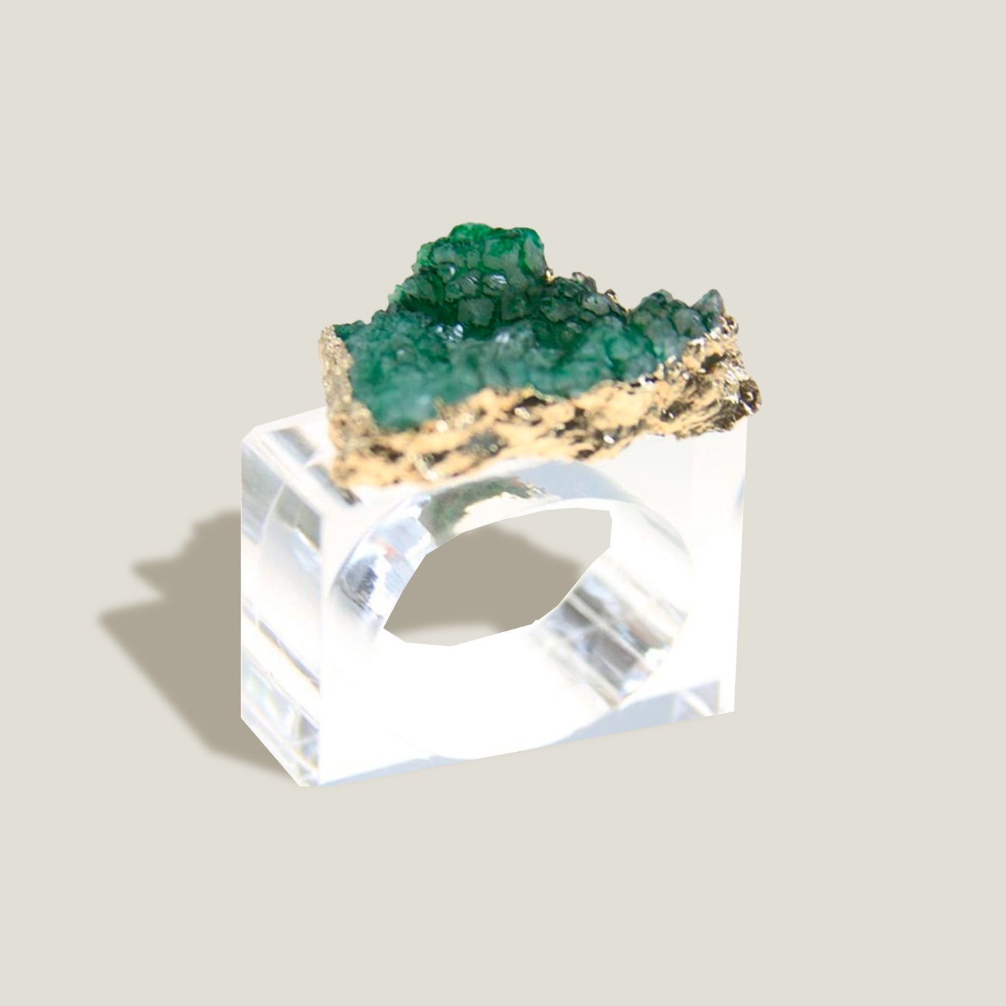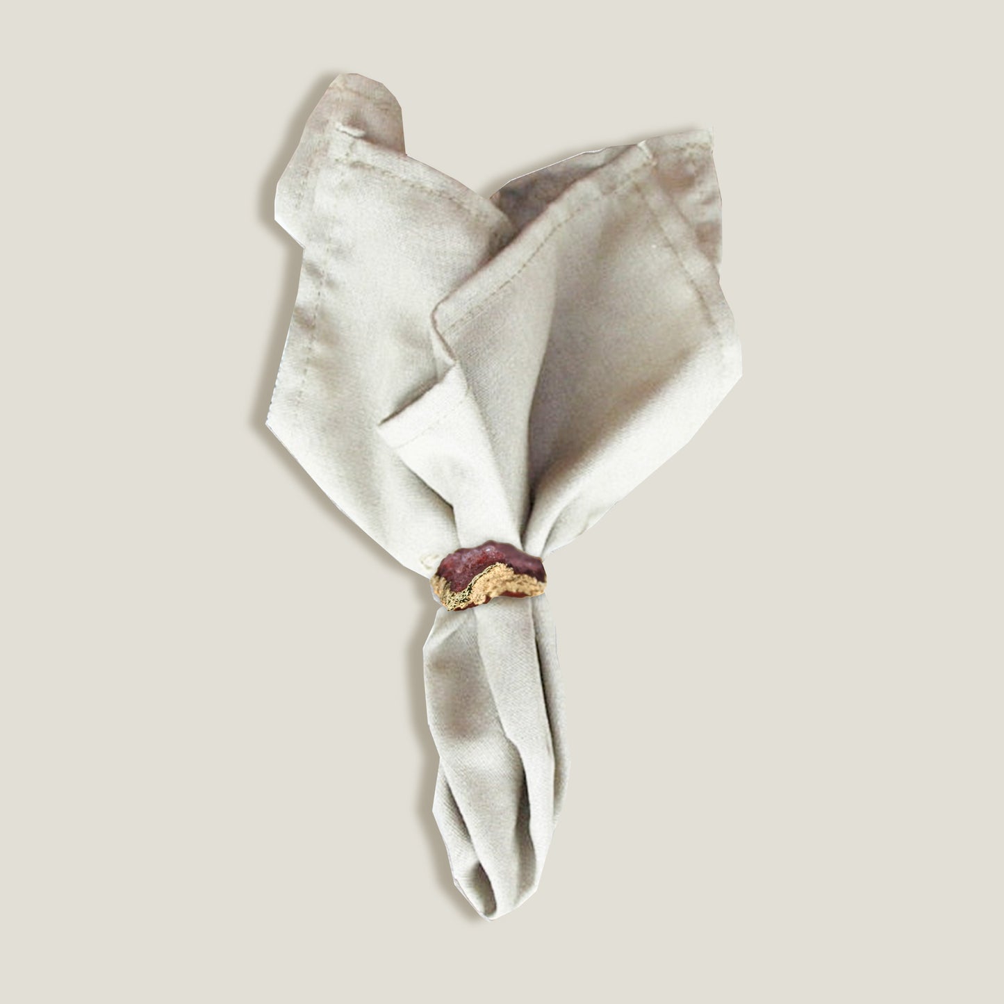 The Agate Napkin Ring base has a smooth surface texture. The agate imitation has a resembled texture of a stone.