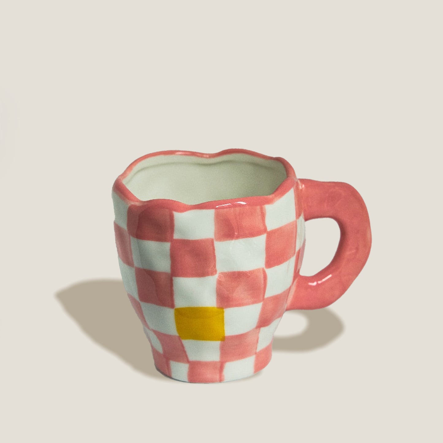 The Plaid Mugs has a beautiful hand-painted plaid checkered square pattern mug. This gorgeous ceramic cup is a favorite from our store.