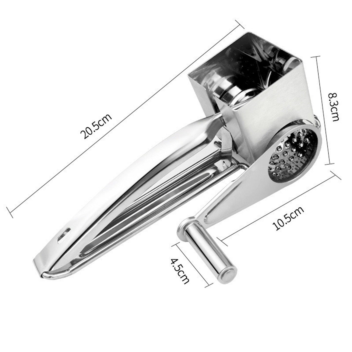 This Silver Metal Cheese Grinder is ideal for quickly and efficiently grinding hard cheeses. Constructed from durable metal, this grinder is designed to last through intense uses. Its unique grinder design reduces friction and provides effortless and even grinding with minimal strain.