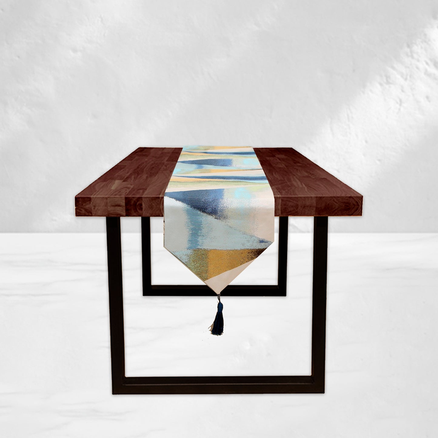 This Washed Ocean Blue Table Runner is crafted from a lightweight cotton blend and features a unique, washed texture that adds a dynamic visual element to a dining table. Its subtle coloring pairs well with a variety of decor styles. Durable and easy to clean.