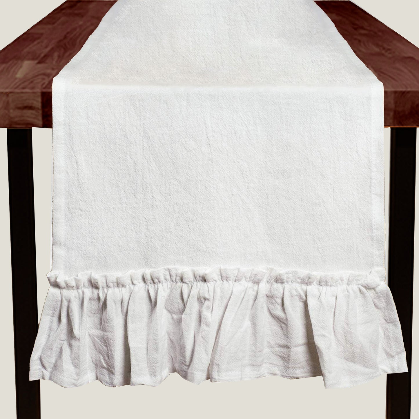 The Ruffles Table Runner is a gorgeous piece for any dining room interior, the soft and smooth cotton fabric creates a beautiful atmosphere for your table, and is available in different sunning colors.